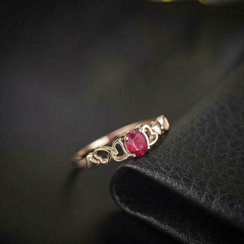 1.25ct Oval Cut Pink Ruby Heart Design Shank Solitaire Ring 14K Rose Gold Finish