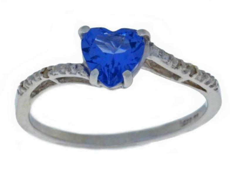 1.2ct Engagement Ring Heart Cut Blue Sapphire Swirl Twist 14k White Gold Finish
