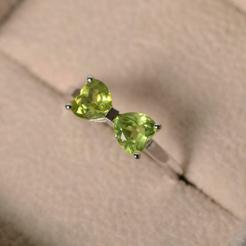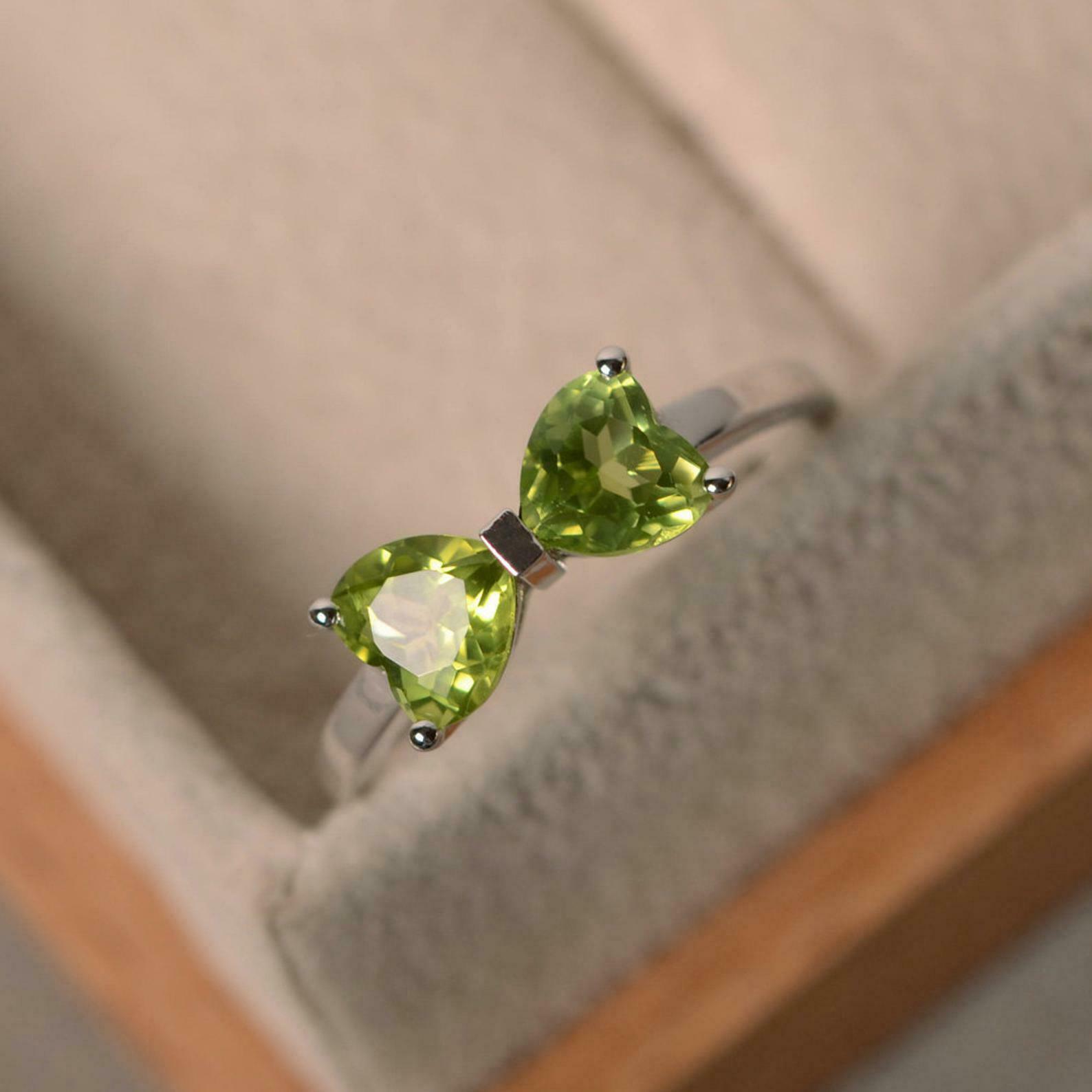 1.2ct Engagement Ring Heart Cut Green Peridot Bow Knot 14k White Gold Finish