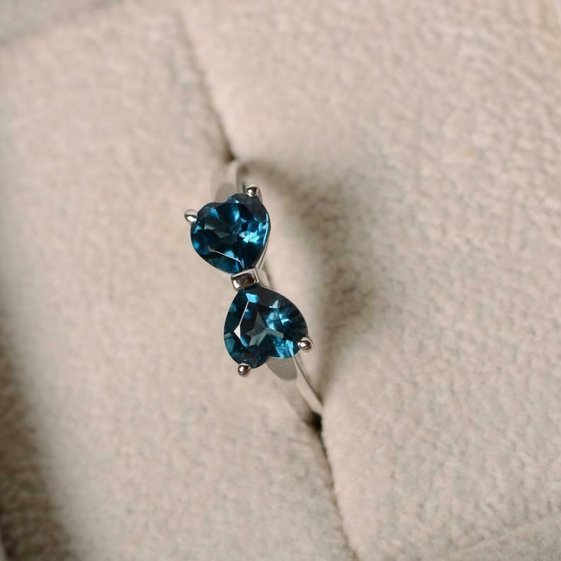 1.2ct Engagement Ring Heart Cut London Blue Topaz Bow Knot 14k White Gold Finish