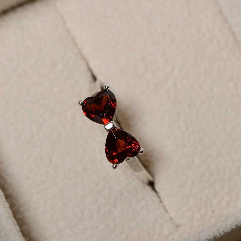 1.2ct Engagement Ring Heart Cut Red Garnet Bow Knot 14k White Gold Finish