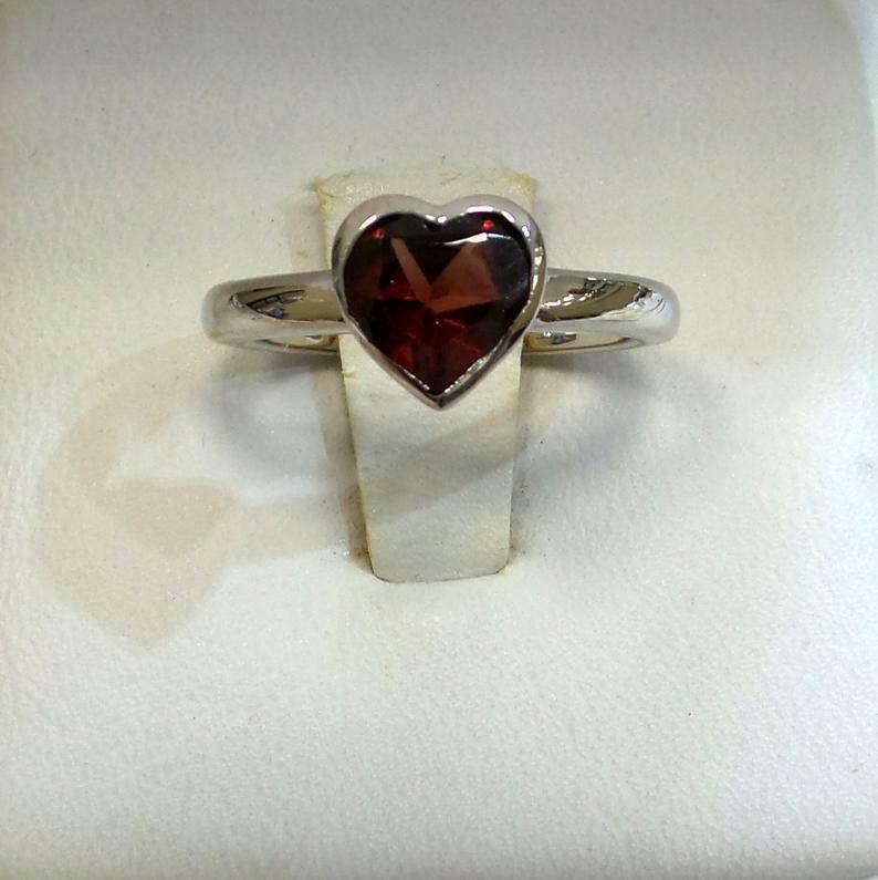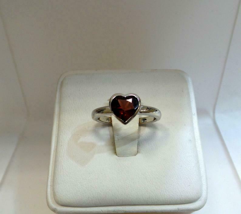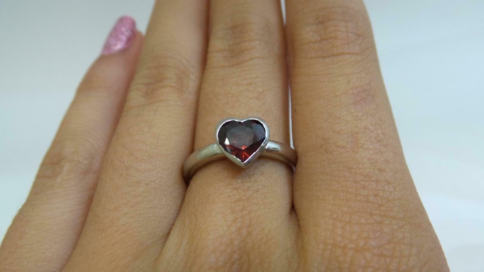 1.2ct Engagement Ring Heart Cut Red Garnet Solitaire 14k White Gold Finish