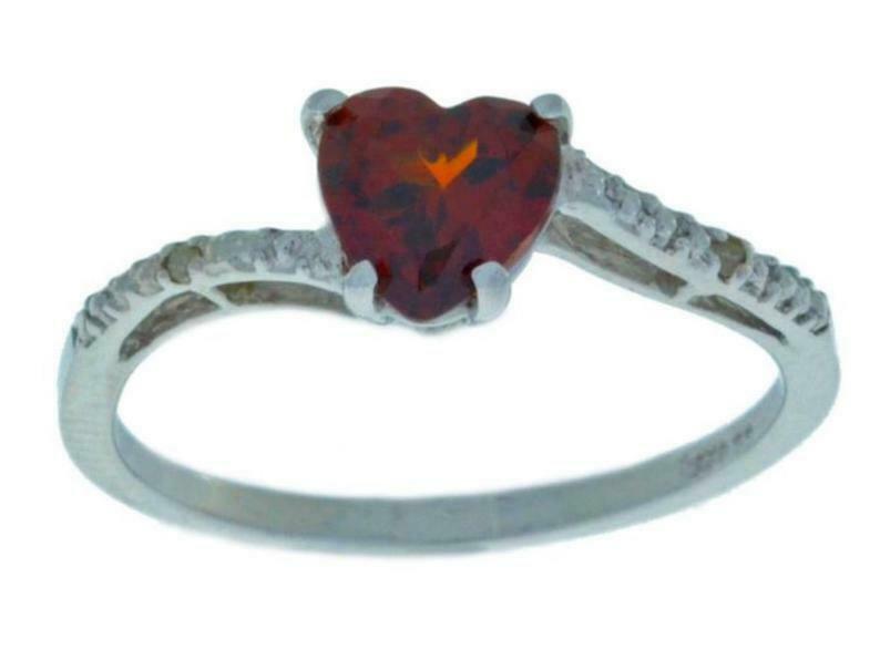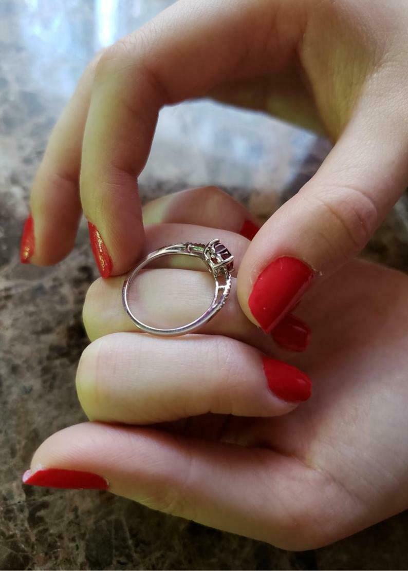 1.2ct Engagement Ring Heart Cut Red Garnet Swirl Twist 14k White Gold Finish