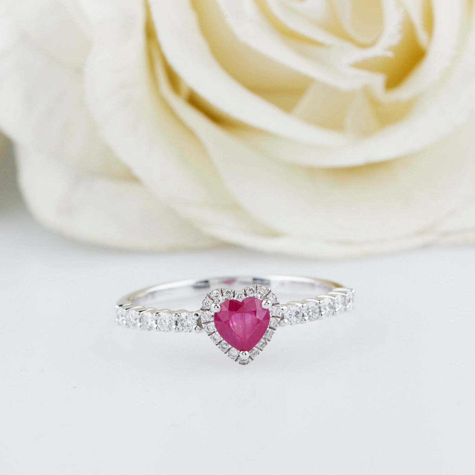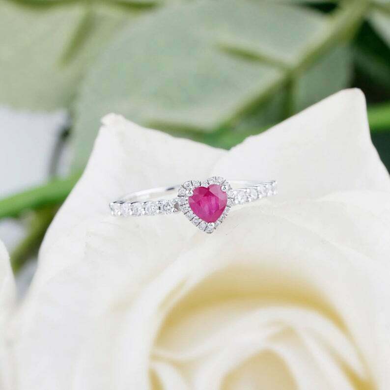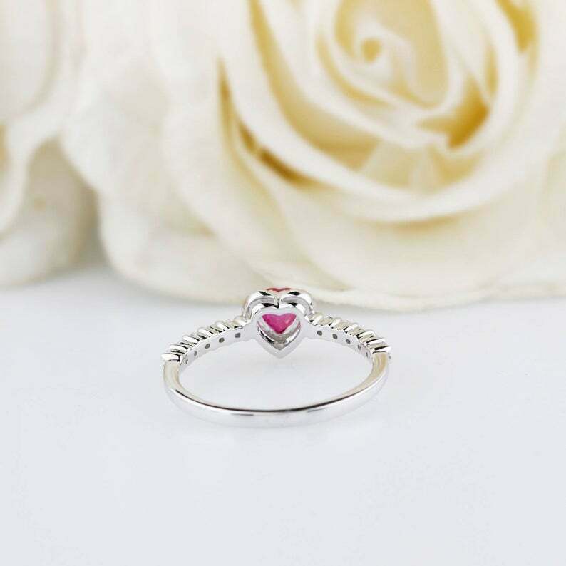 1.2ct Heart Cut Pink Ruby Engagement Ring Halo Solitaire 14k White Gold Finish