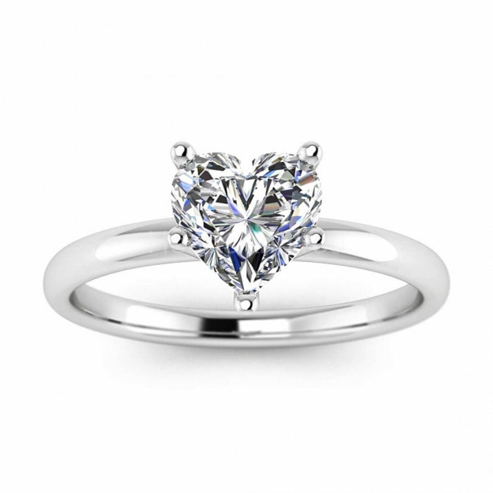 1.2ct Heart Cut Simulated Diamond 6-Prong Solitaire Ring 14k White Gold Plated