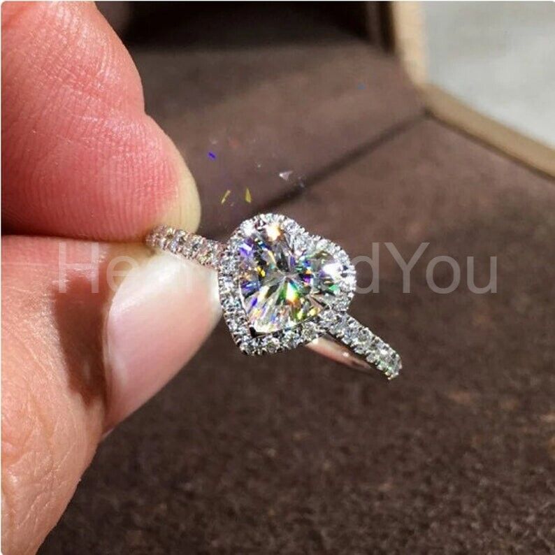 1.2ct Heart Cut Simulated Diamond Halo Engagement Ring 14k White Gold Plated