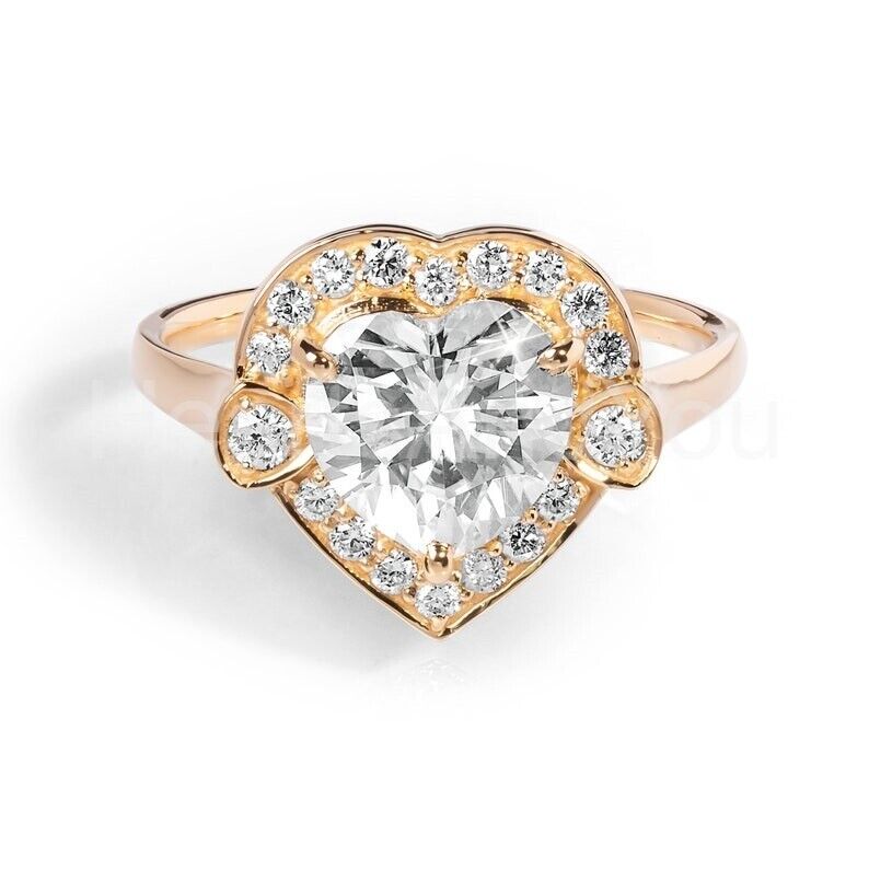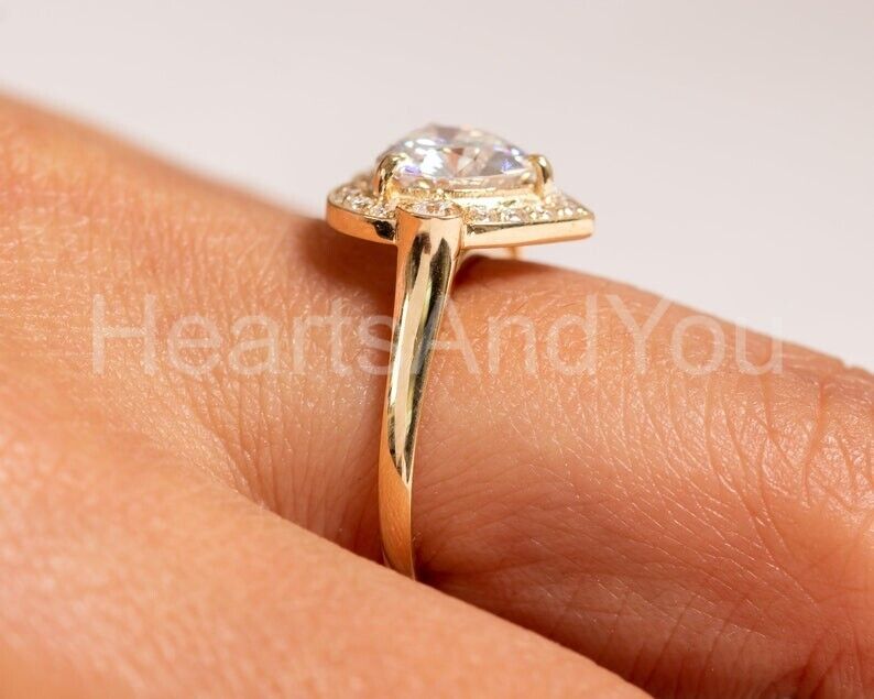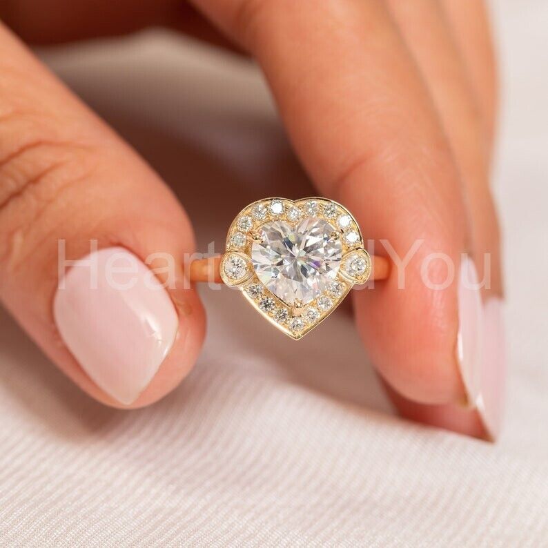 1.2ct Heart Cut Simulated Diamond Halo Engagement Ring 14k Yellow Gold Plated