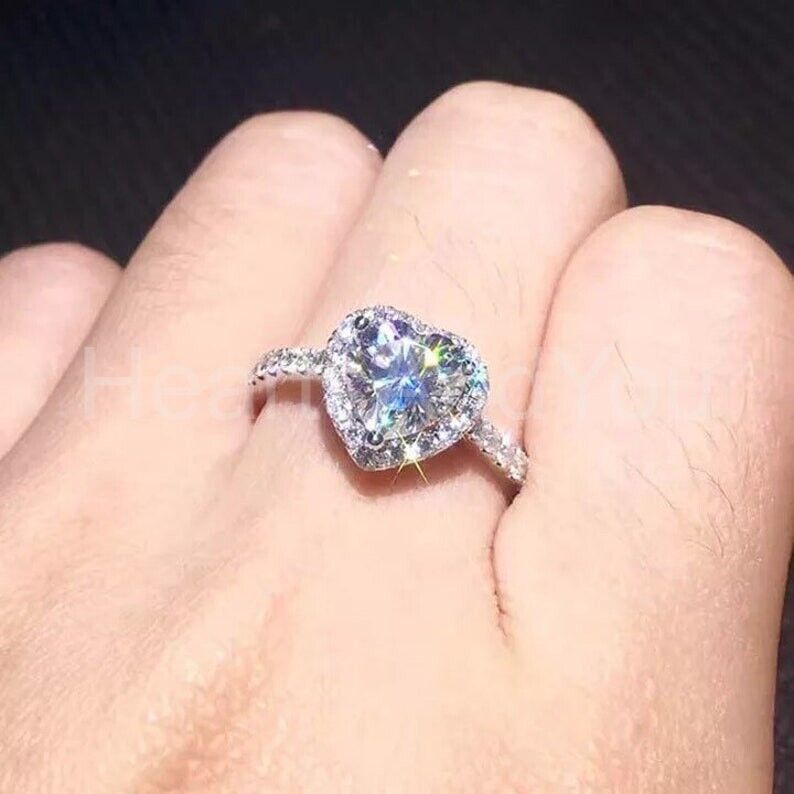 1.2ct Heart Cut Simulated Diamond Round Accents Halo Ring 14k White Gold Plated