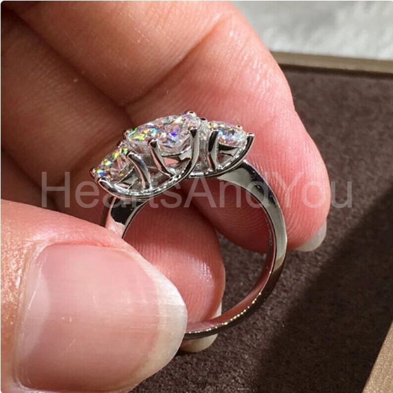 1.2ct Heart Simulated Diamond Three Stone Engagement Ring 14k White Gold Plated