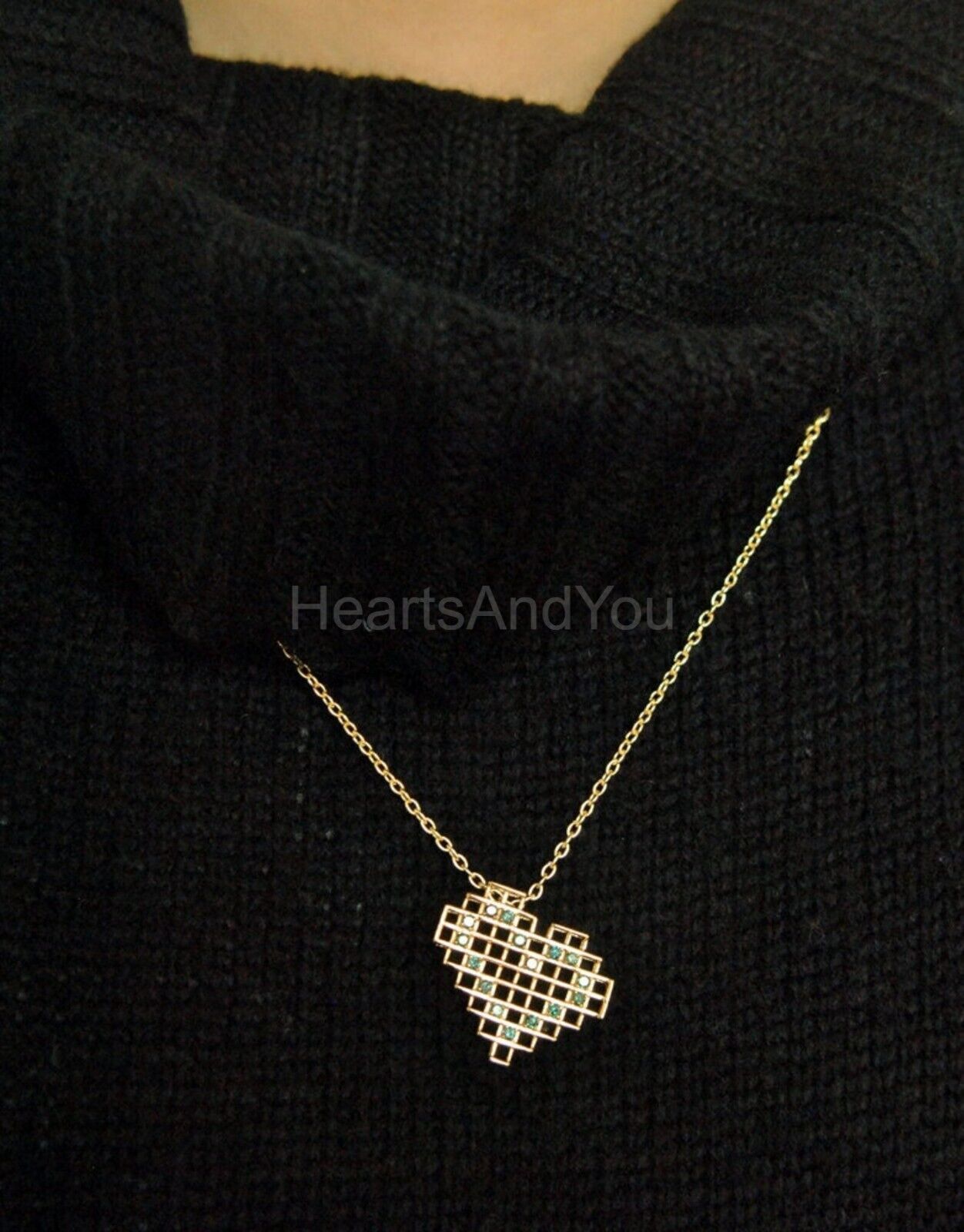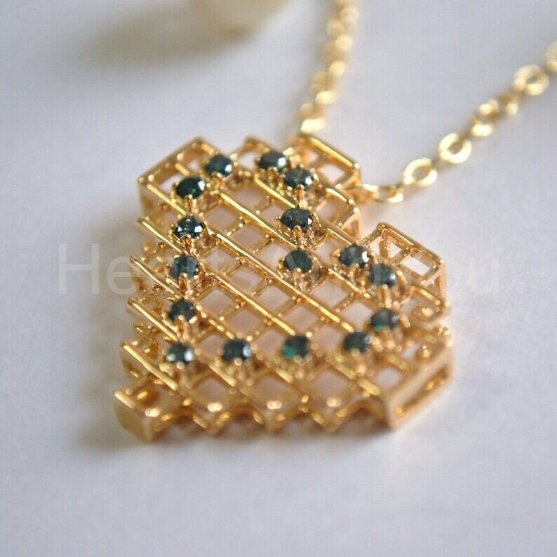 1.2ct Round Cut Simulated Blue Topaz Pixel Heart Pendant Chain 14K Gold Plated