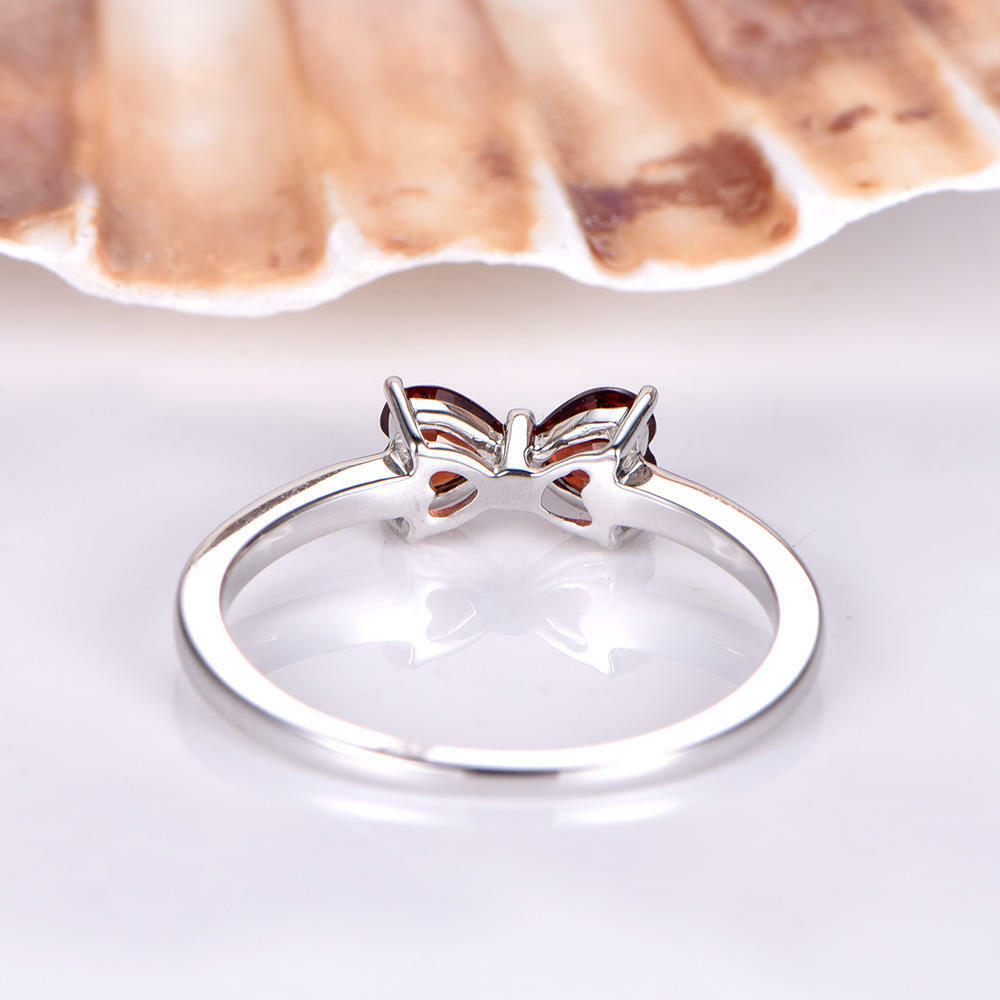 1.3ct Heart Cut Red Garnet Bow Design Engagement Ring 14k White Gold Finish