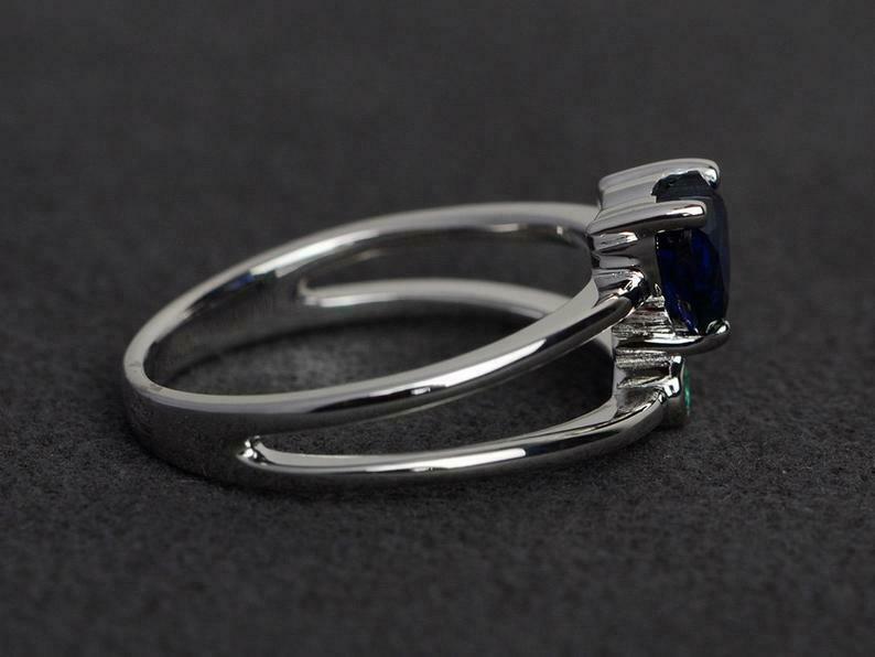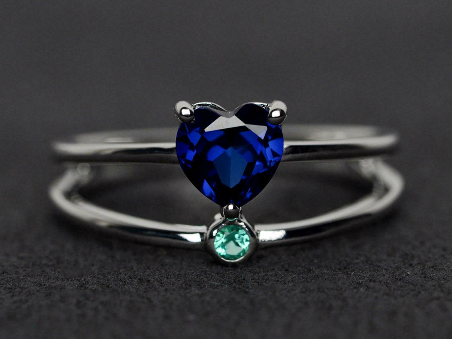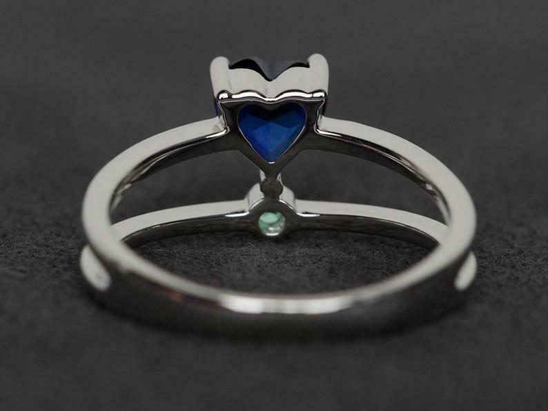 1.4ct Engagement Ring Heart Cut Blue Sapphire Split Shank 14k White Gold Finish