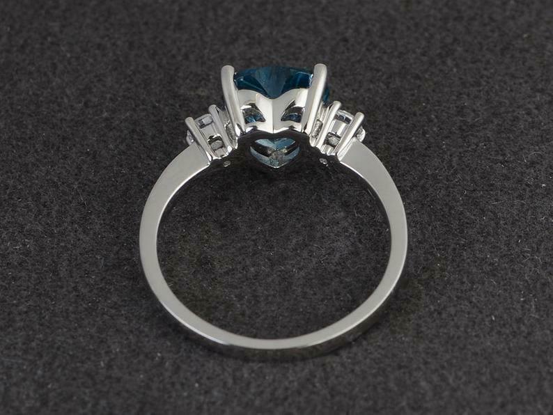 1.4ct Engagement Ring Heart Cut Blue Topaz Three Stone 14k White Gold Finish
