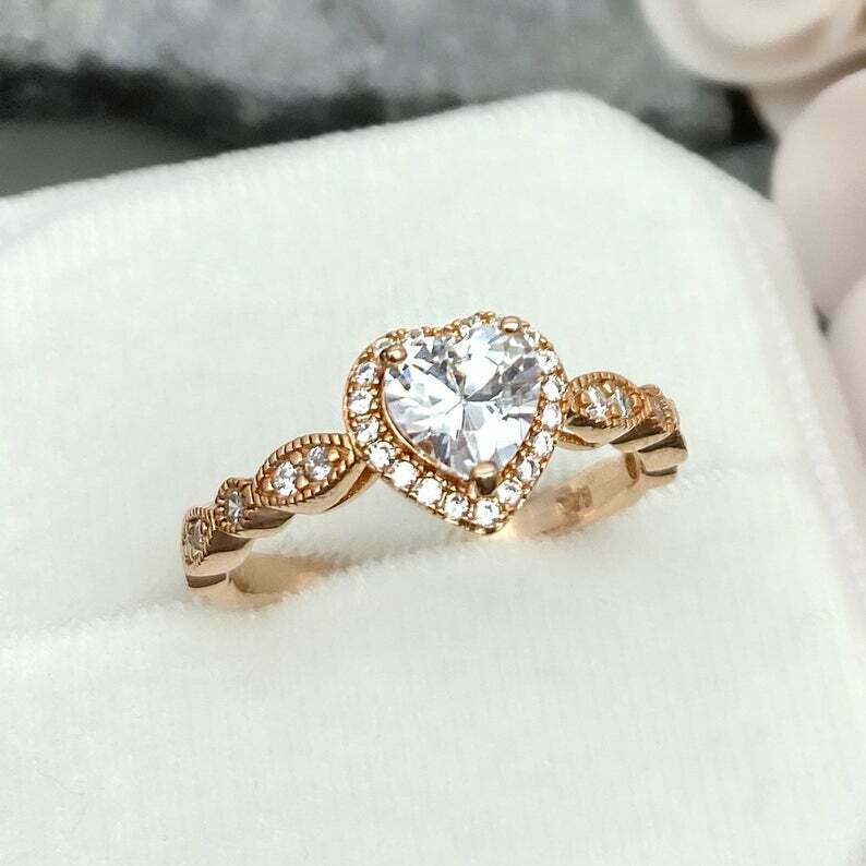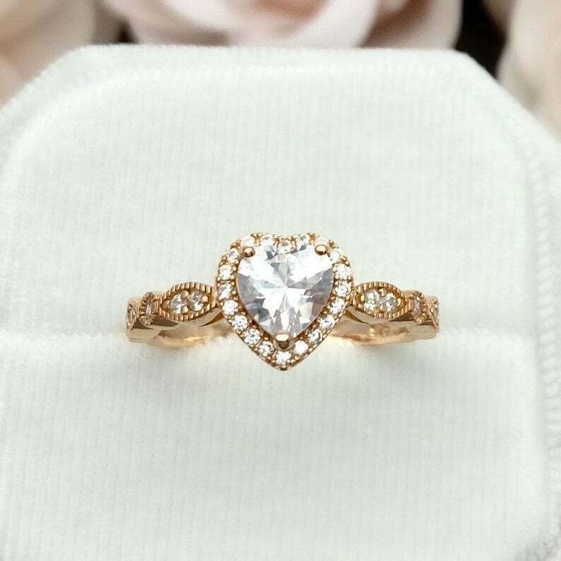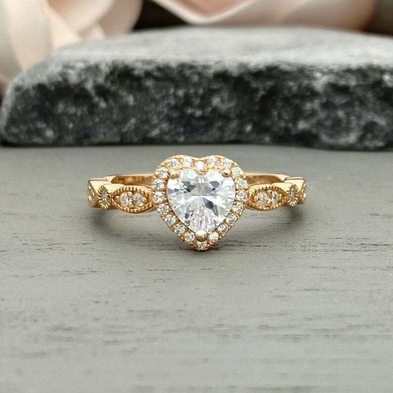 1.4ct Engagement Ring Heart Cut Diamond Halo Design 14k Yellow Gold Finish