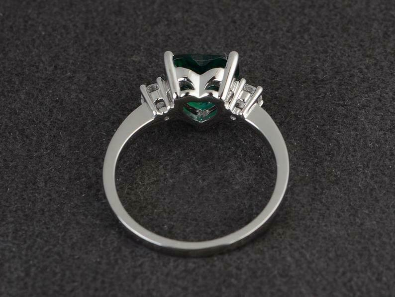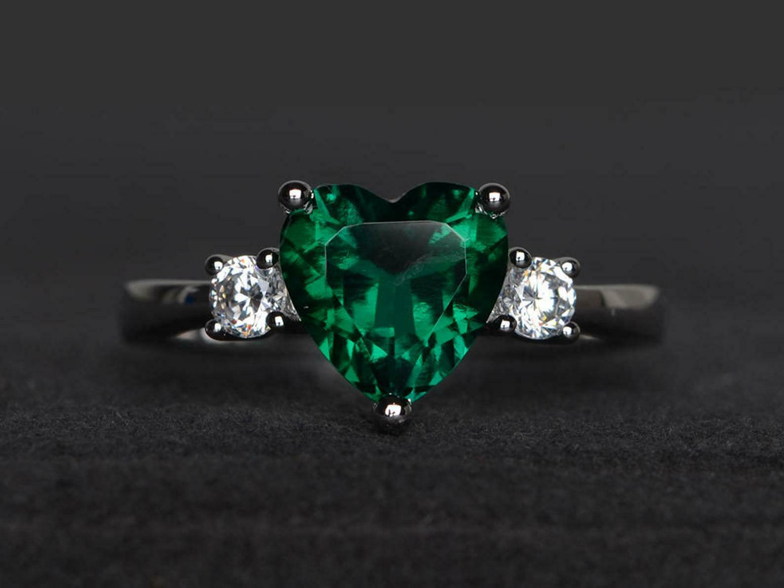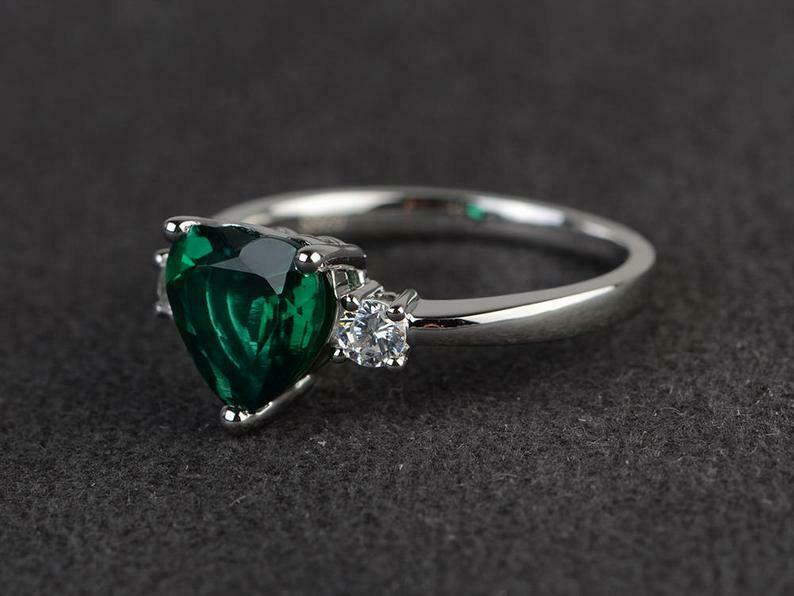 1.4ct Engagement Ring Heart Cut Green Emerald Three Stone 14k White Gold Finish