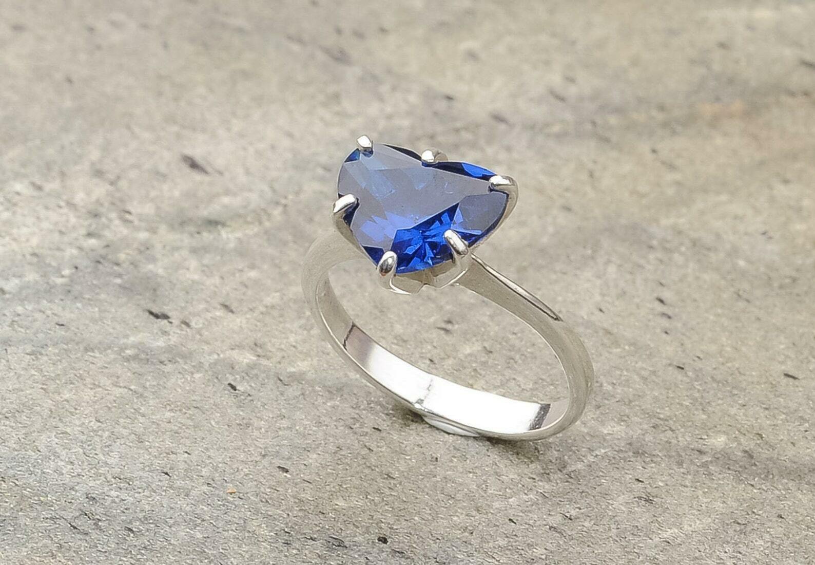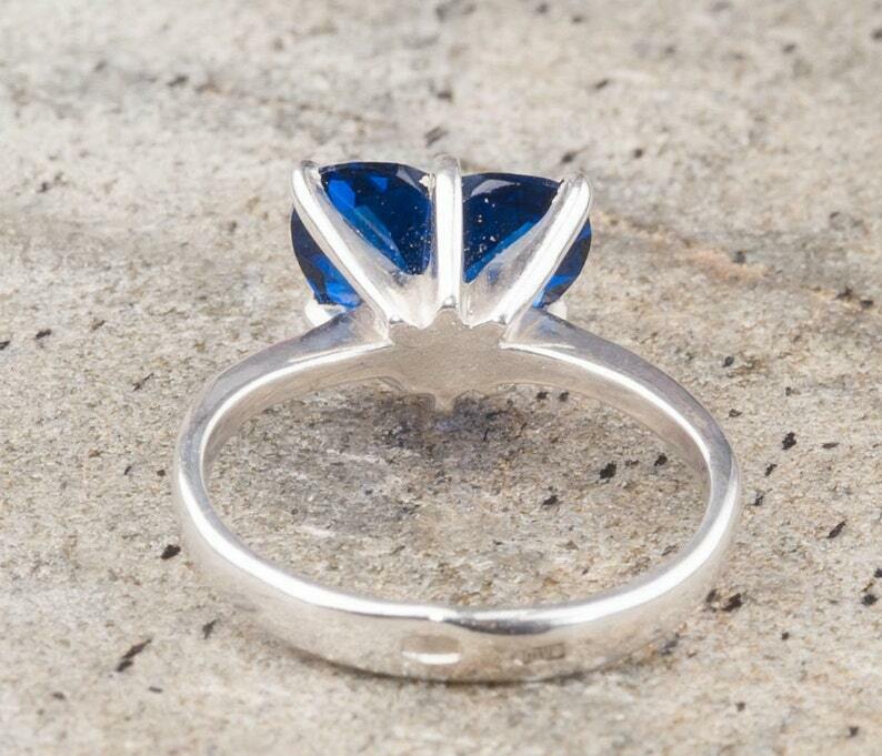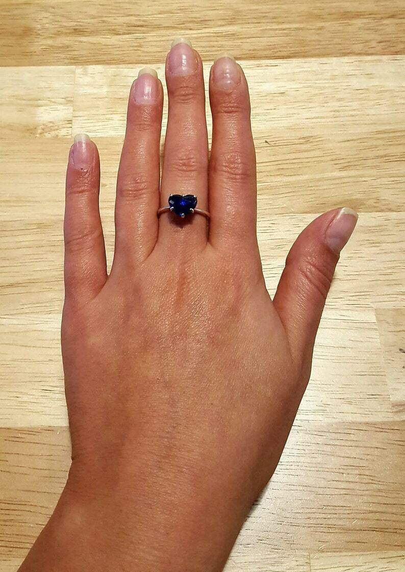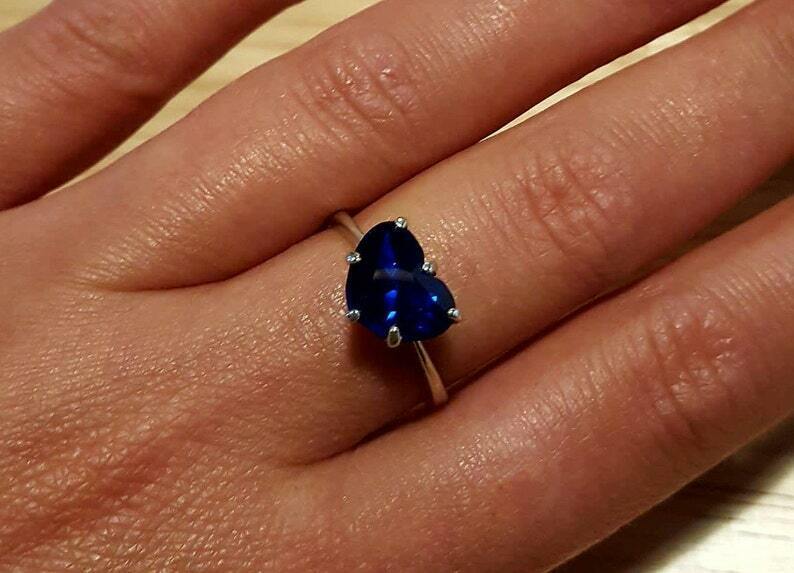 1.5ct Engagement Ring Heart Cut Blue Sapphire Solitaire 14k White Gold Finish