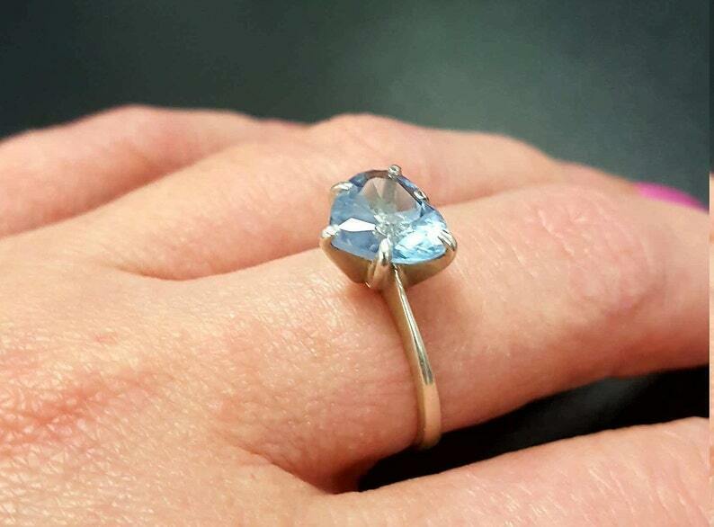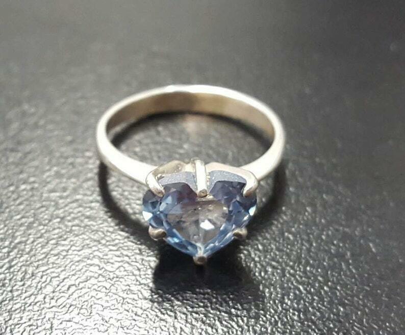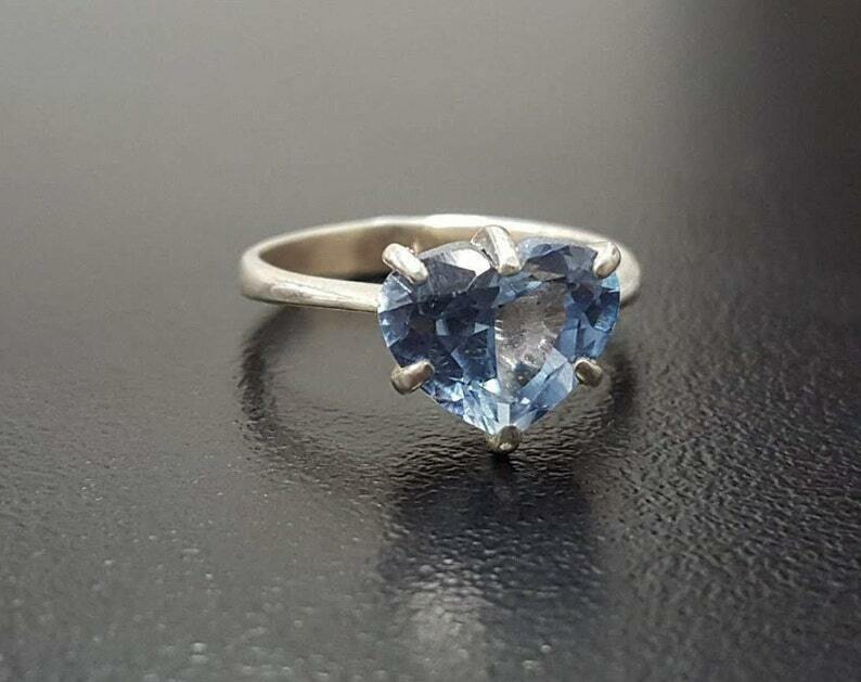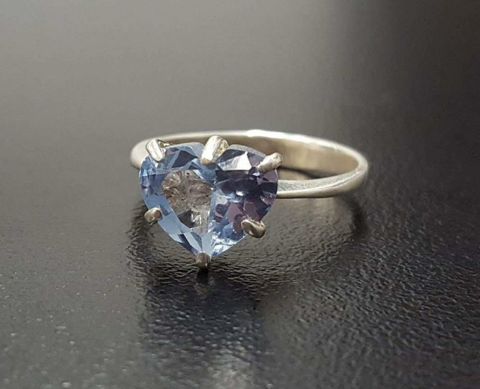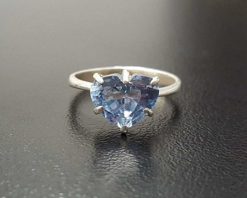 1.5ct Engagement Ring Heart Cut Blue Tanzanite Solitaire 14k White Gold Finish