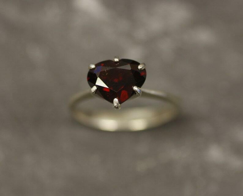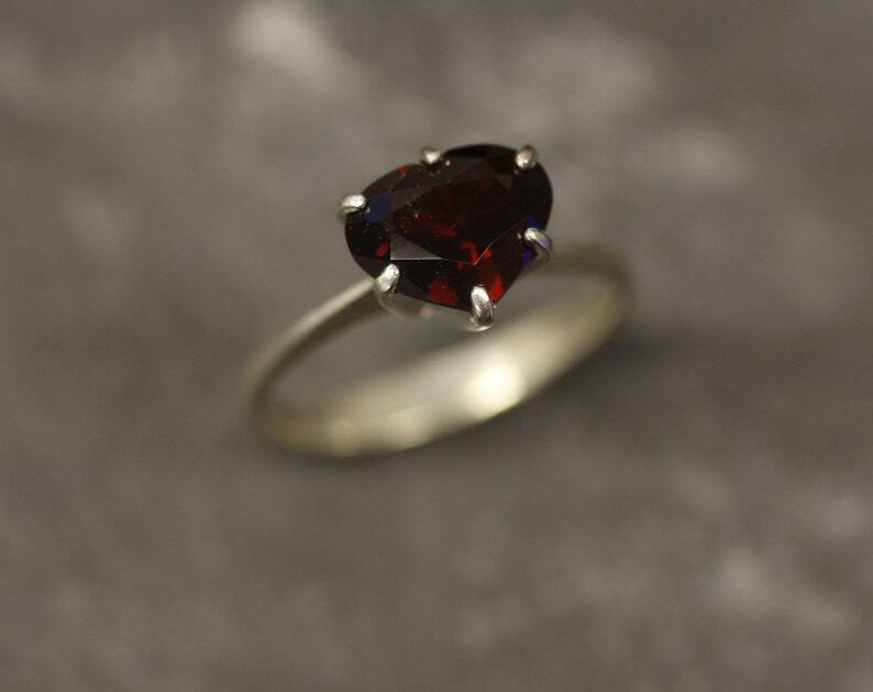 1.5ct Engagement Ring Heart Cut Red Garnet Solitaire Design 14k White Gold Finish