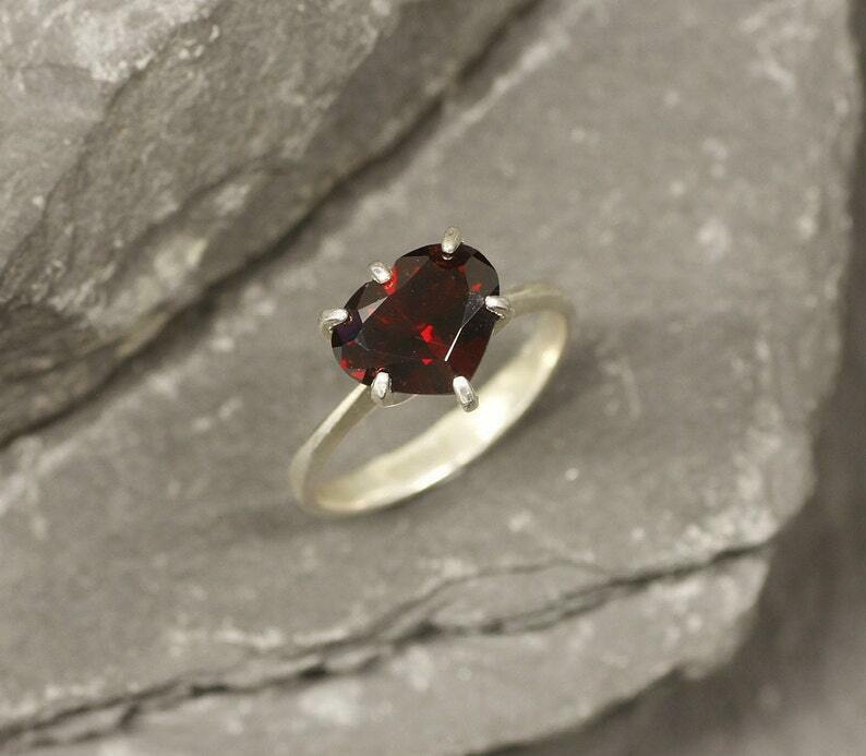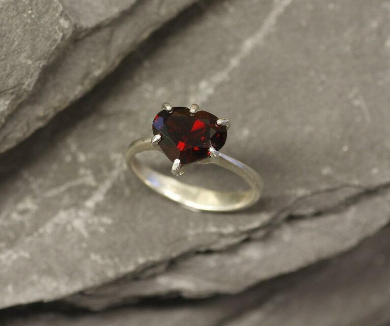 1.5ct Engagement Ring Heart Cut Red Garnet Solitaire Design 14k WhiteGold Finish
