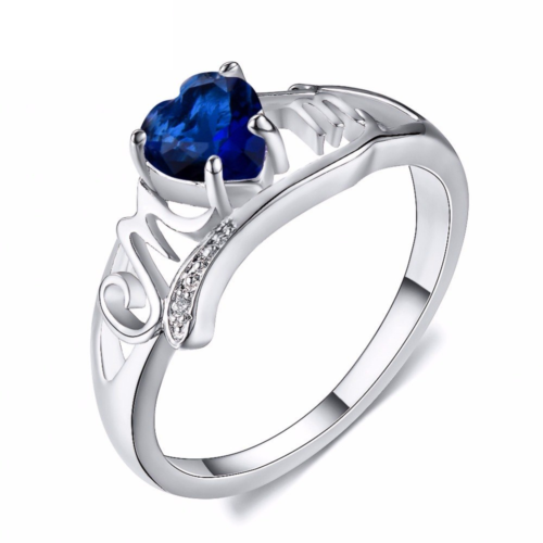 1.5ct Heart Blue Sapphire Mothers Day Gift Anniversary Ring 14k White Gold Over