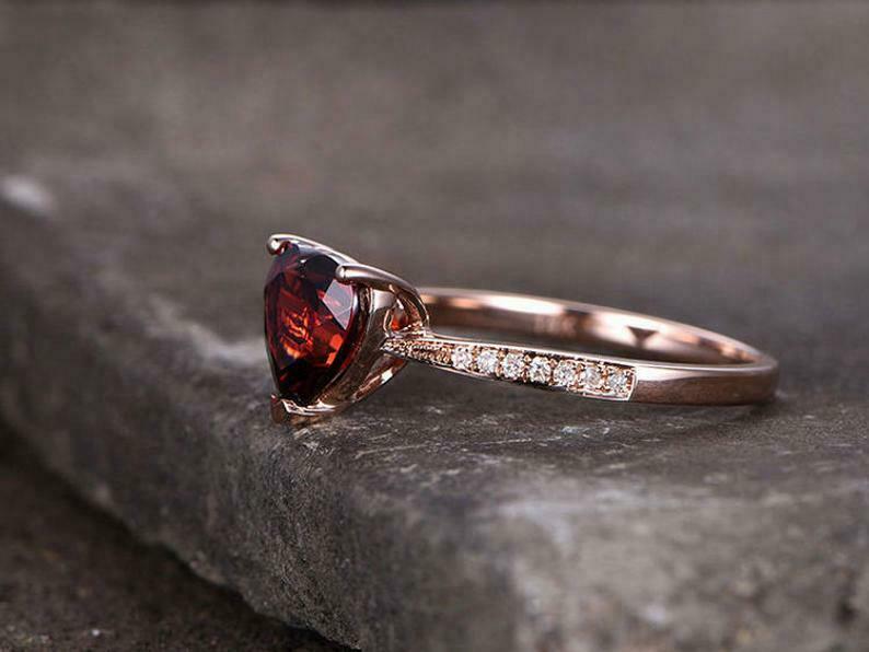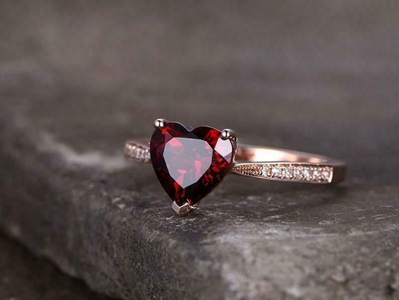 1.5ct Heart Cut Red Garnet Solitaire with Round Accent Ring 14k Rose Gold Finish