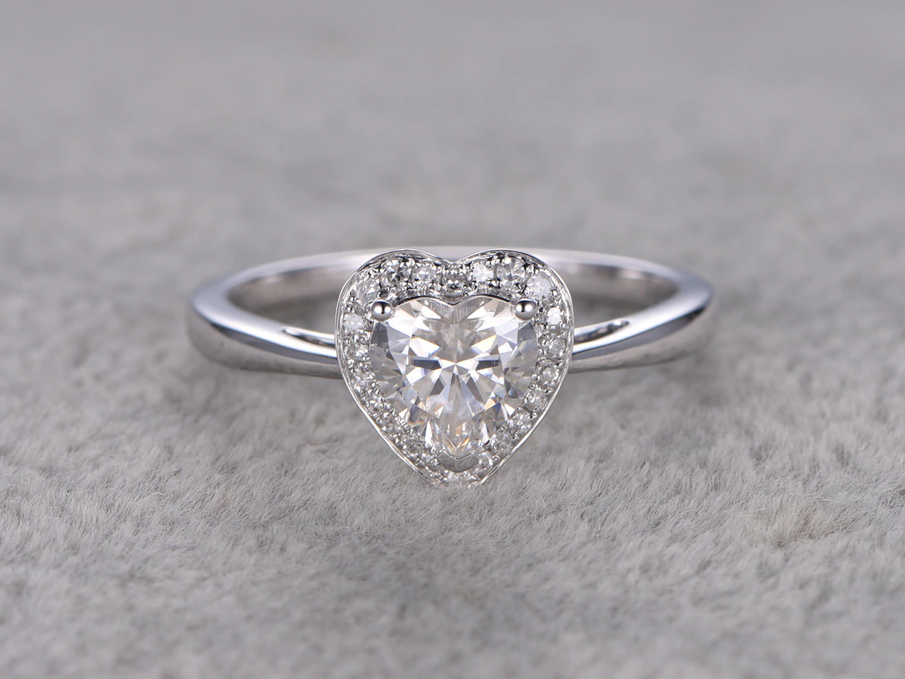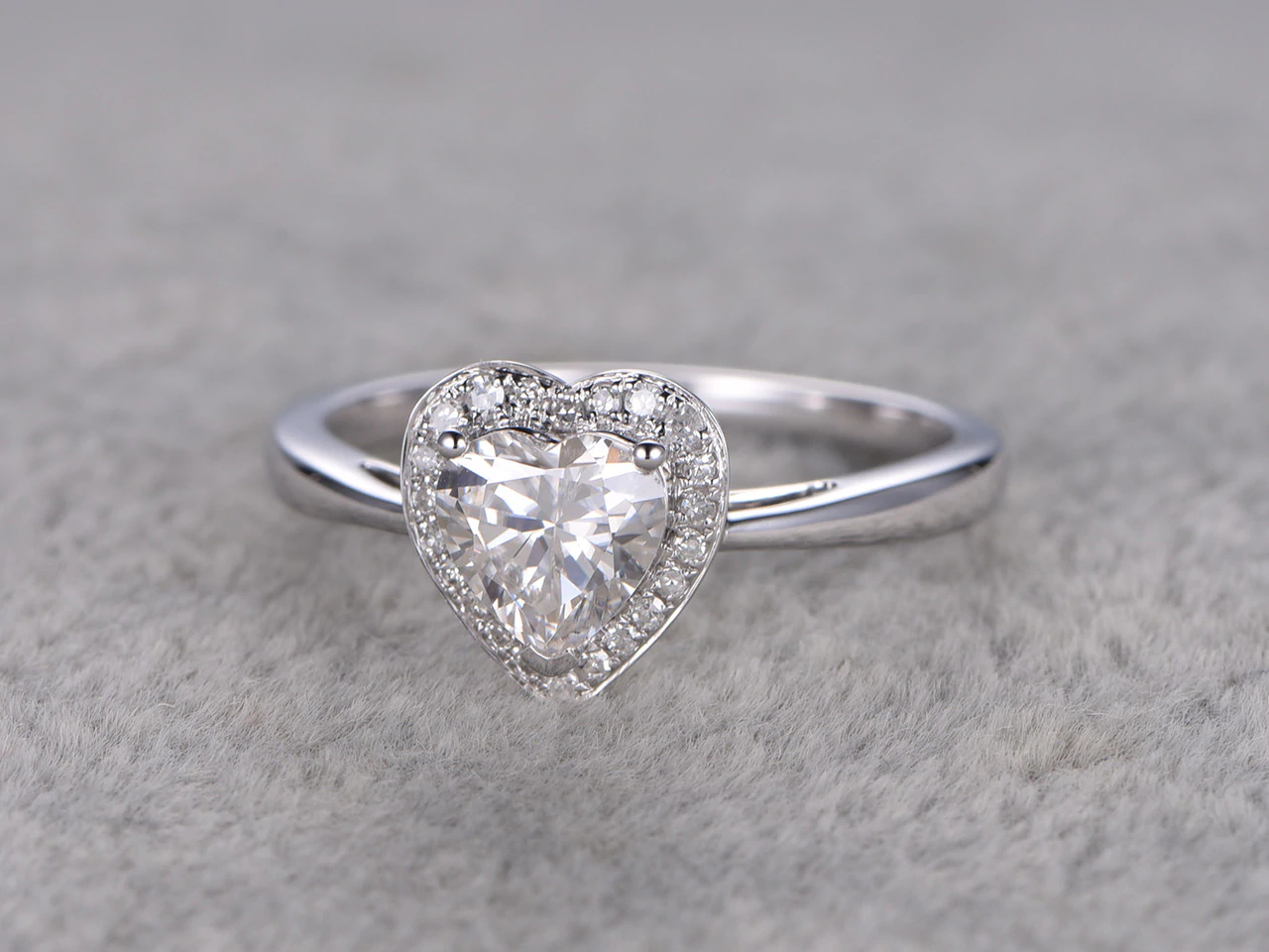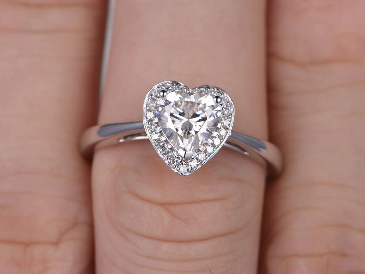 1.5ct Heart Cut VVS1 Diamond Halo Solitaire Engagement Ring 14k WhiteGold Finish