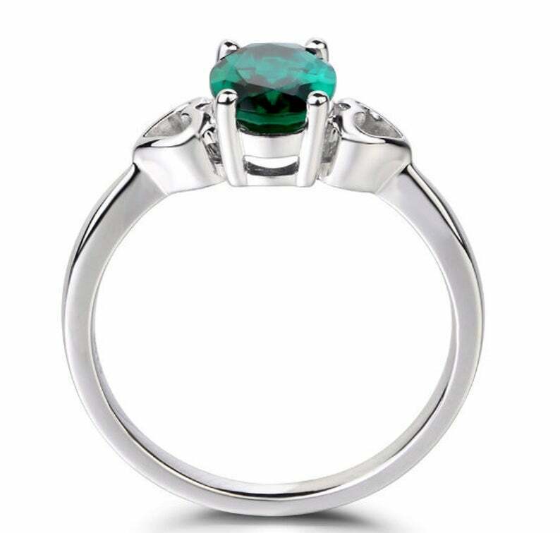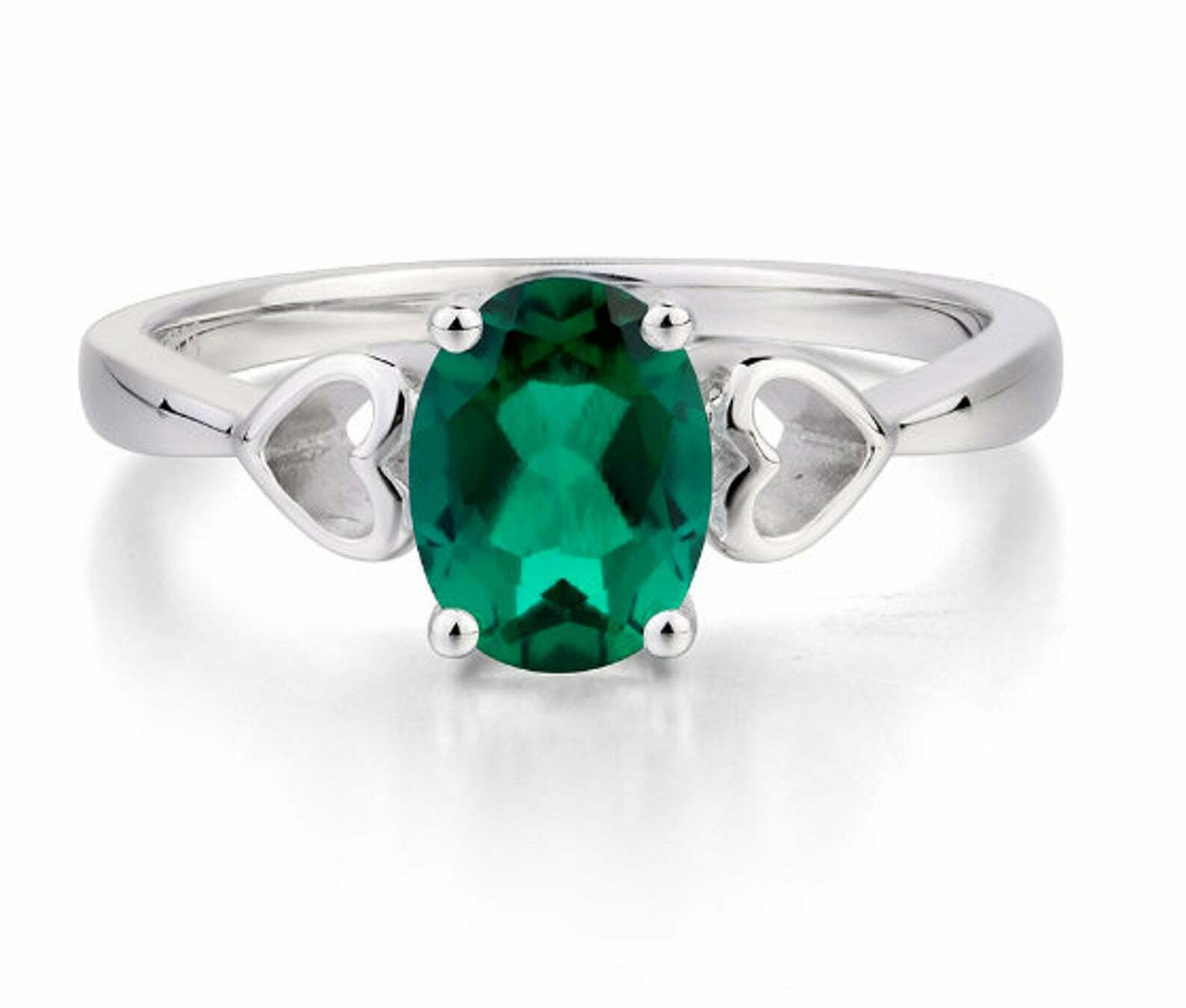 1.5ct Oval Cut Green Emerald Heart Shaped Solitaire Ring 14k White Gold Finish