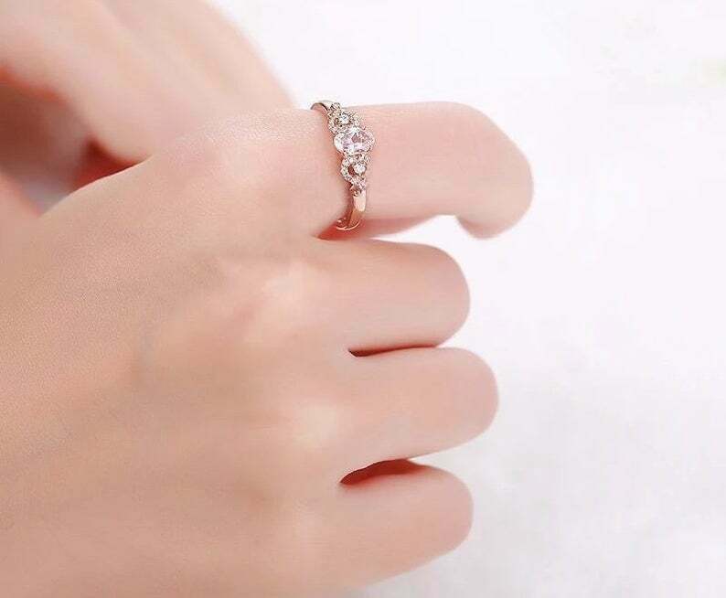 1.5ct Oval Cut Peach Morganite Solitaire Cluster Heart Accent Ring 14k Rose Gold Over