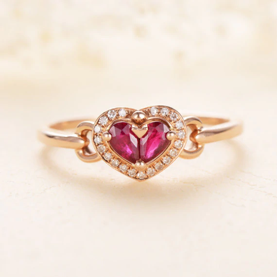 1.5ct Pear Cut Pink Ruby Engagement Ring Diamond Halo Heart Shape 14k Rose Gold Over
