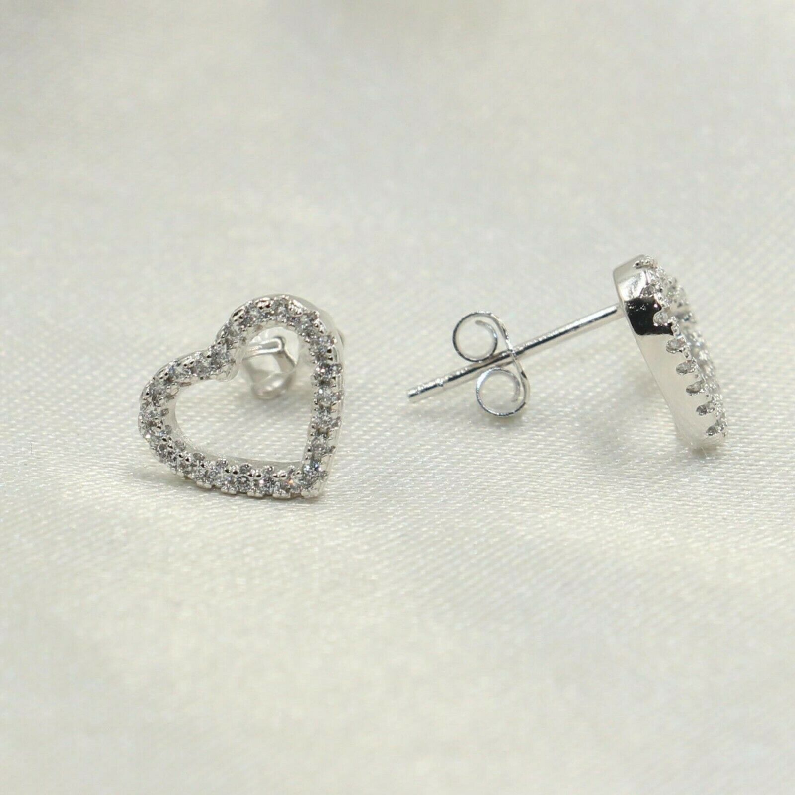 1.5ct Round Cut Diamond Hollow Heart Shape Stud Earrings 14k White Gold Finish
