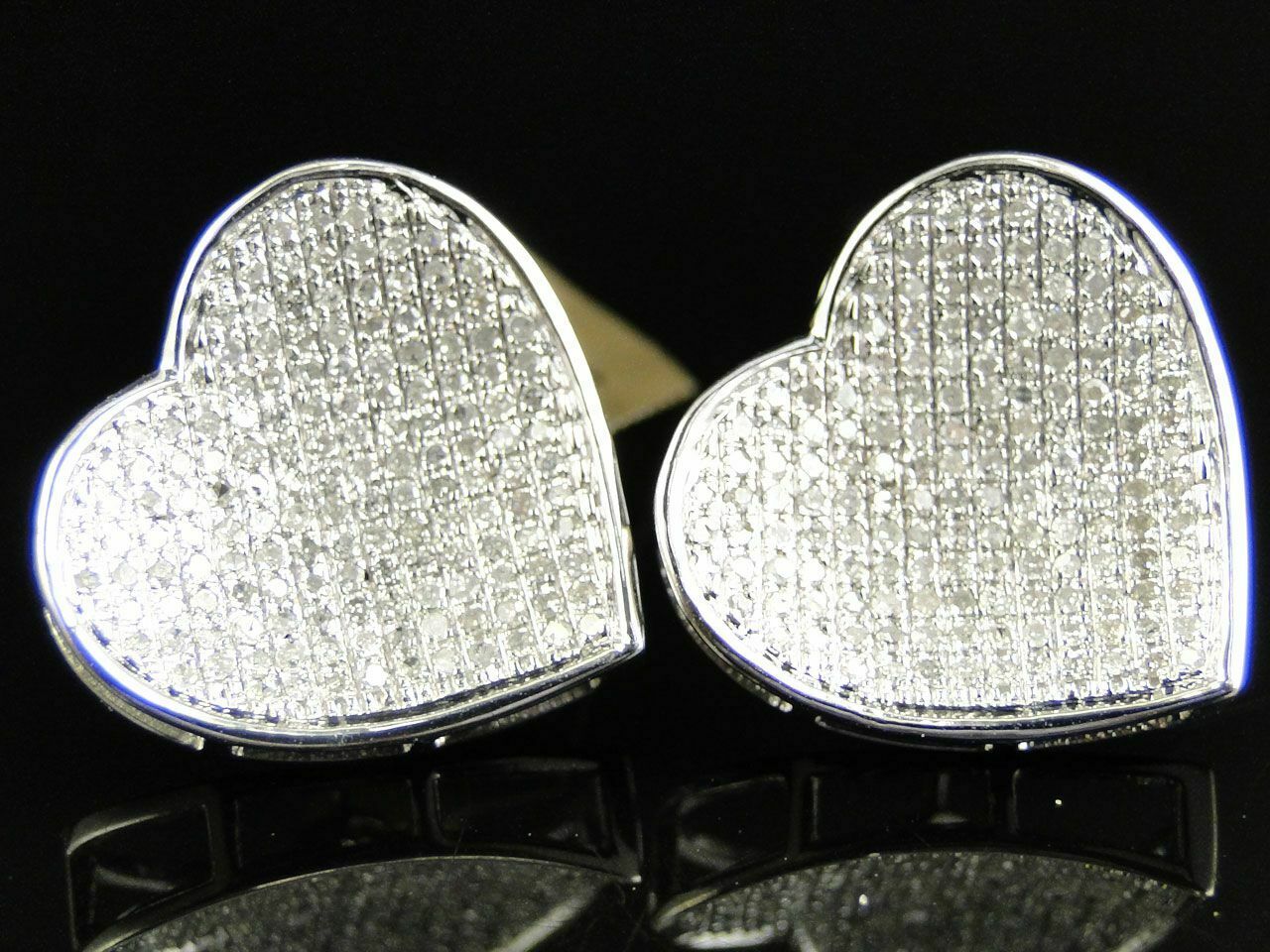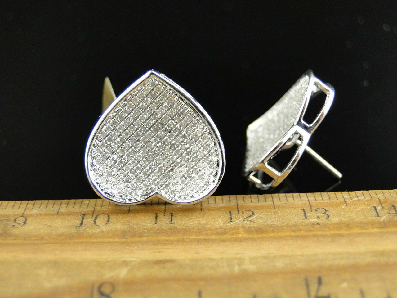 1.5ct Round Cut Diamond Iced Hip Hop Heart Stud Earrings 14k White Gold Finish