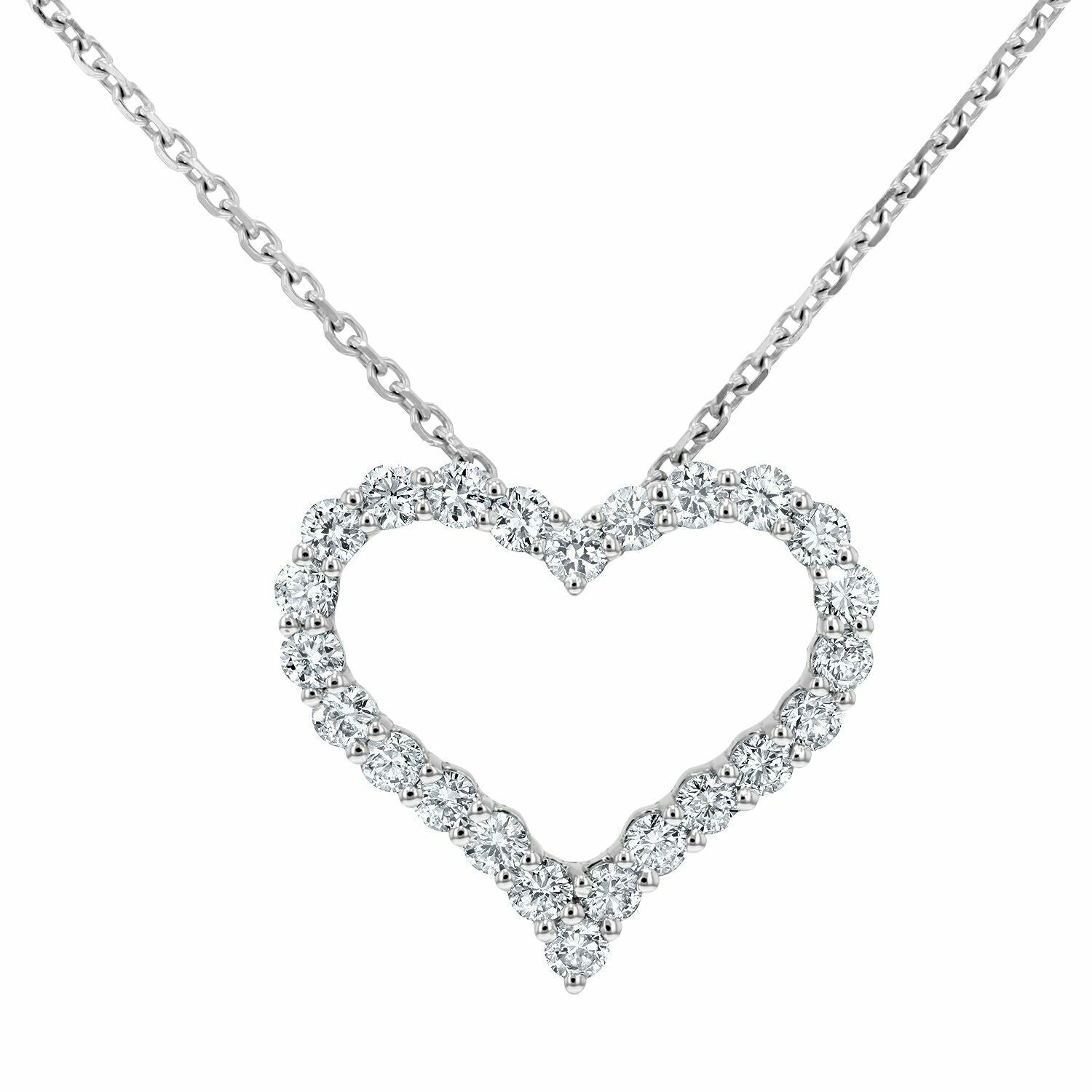 1.5ct Round Diamond Heart Shape Open Design Pendant Chain 14k White Gold Finish