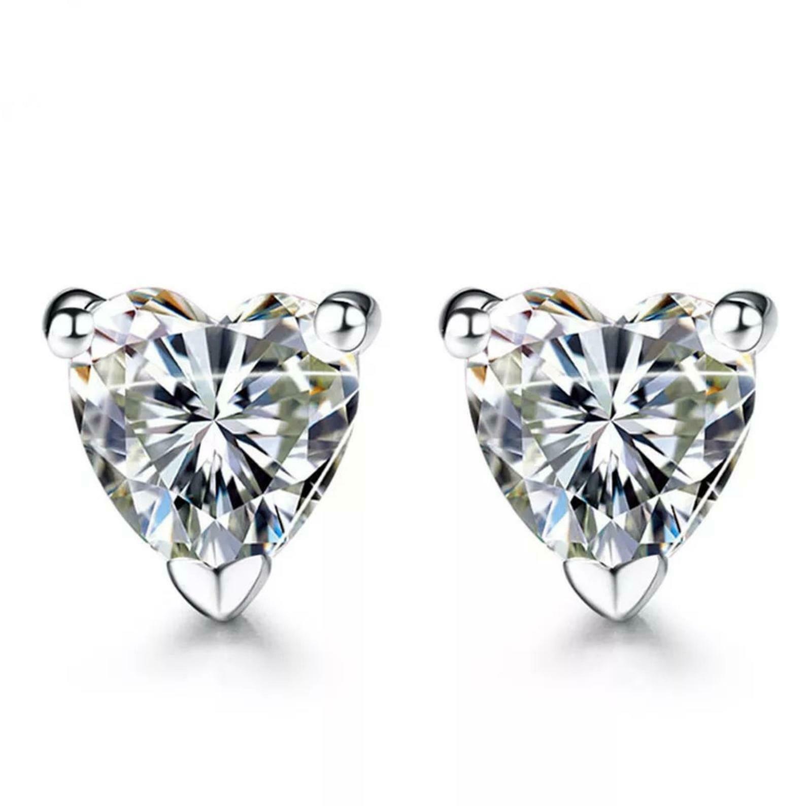 1.5ct Stud Earrings Heart Cut Diamond Solitaire Women 14k White Gold Finish