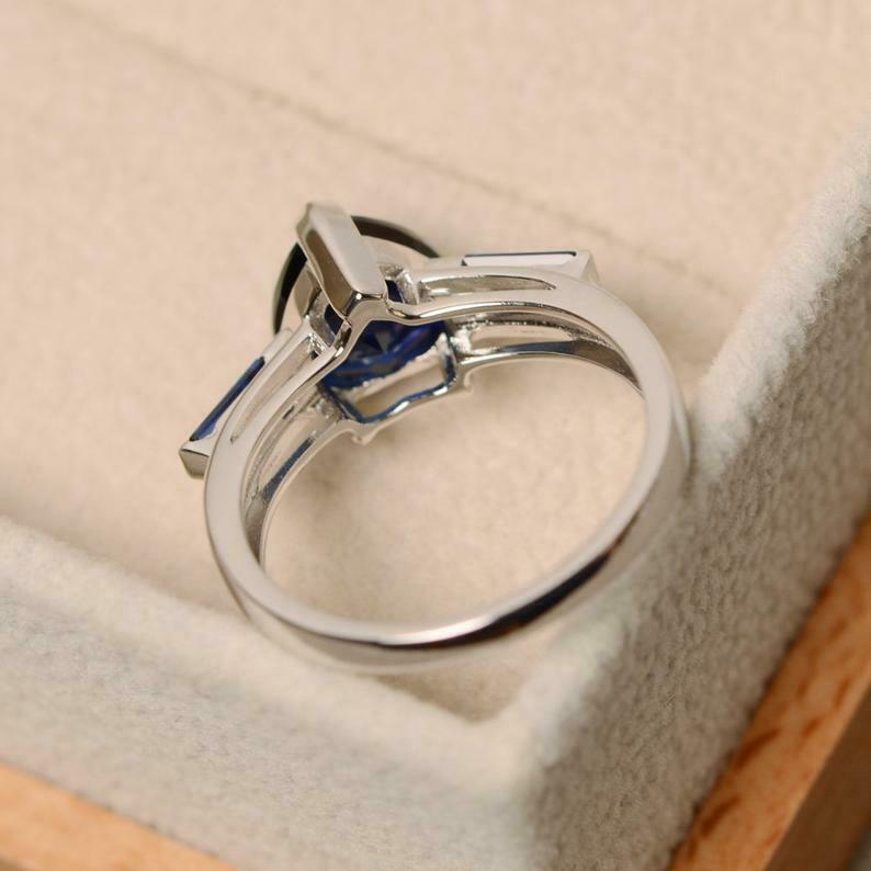 1.65ct Engagement Ring Heart Cut Blue Sapphire Trilogy Solitaire 14k White Gold Finish