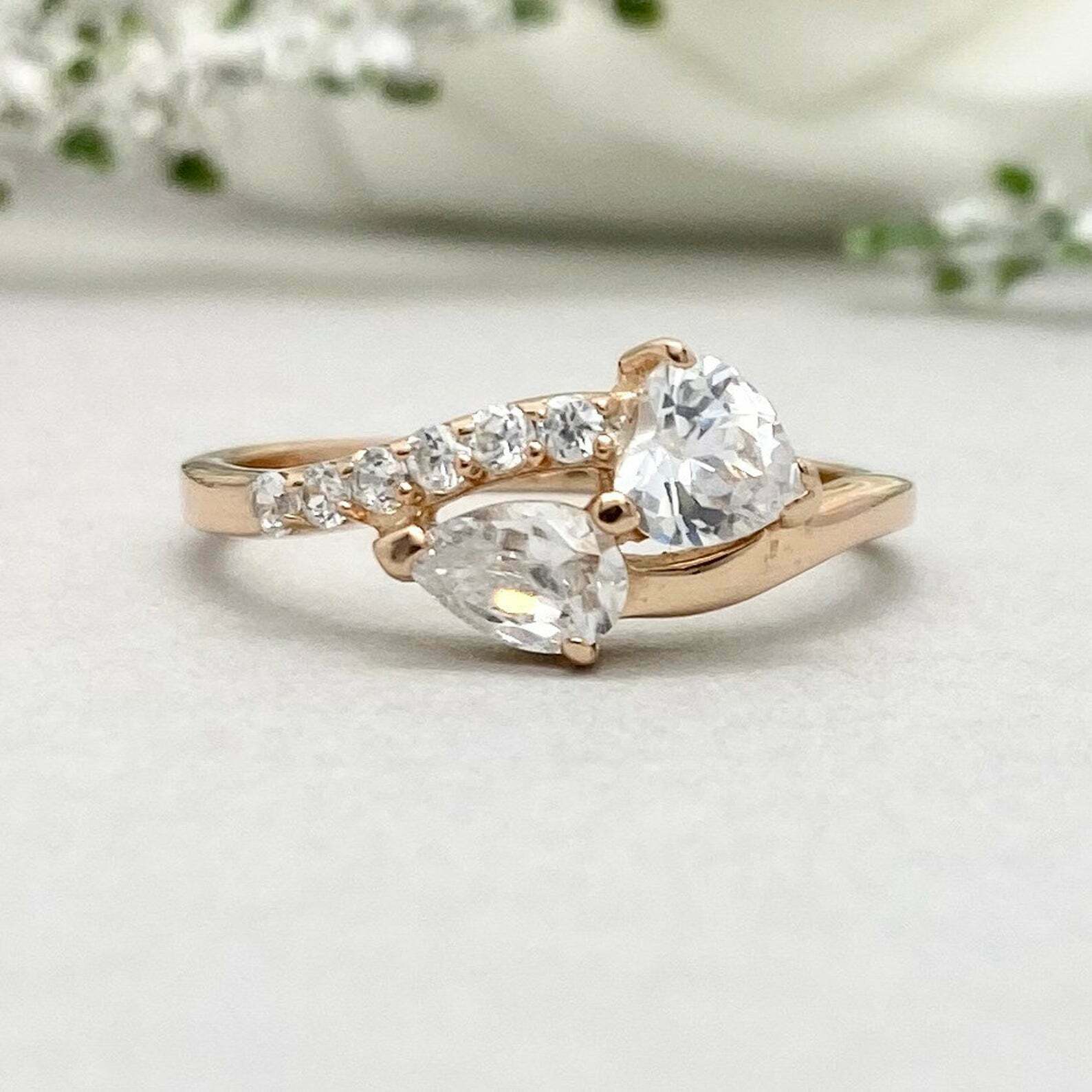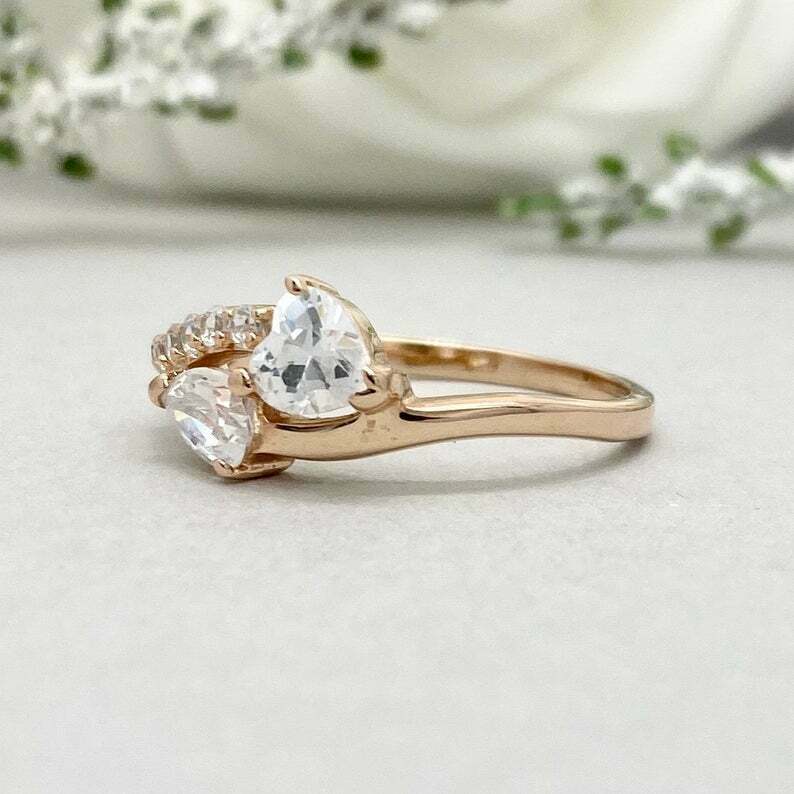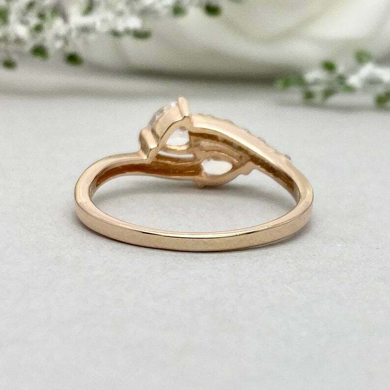 1.6ct Engagement Ring Heart Cut Diamond Bypass Design 14k Yellow Gold Finish