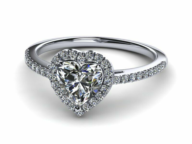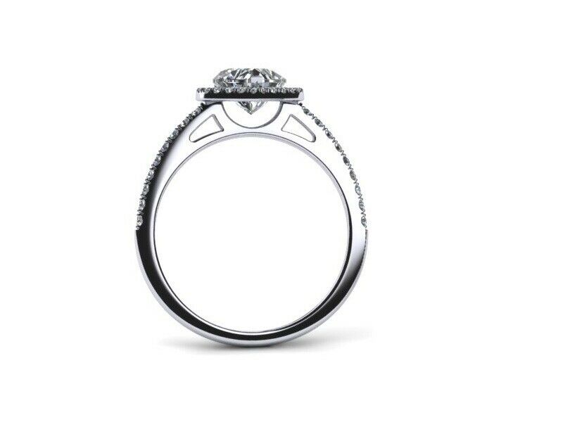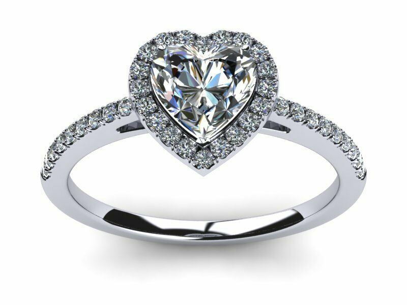1.6ct Engagement Ring Heart Cut Diamond Round Accent Halo 14k White Gold Finish
