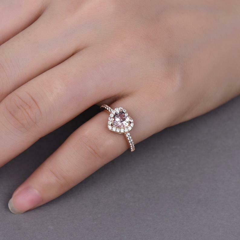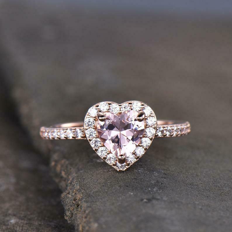 1.6ct Engagement Ring Heart Cut Peach Morganite Halo 14k Rose Gold Finish