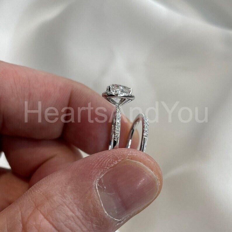 1.6ct Heart Cut Simulated Diamond Wedding Bridal Ring Halo 14k White Gold Plated