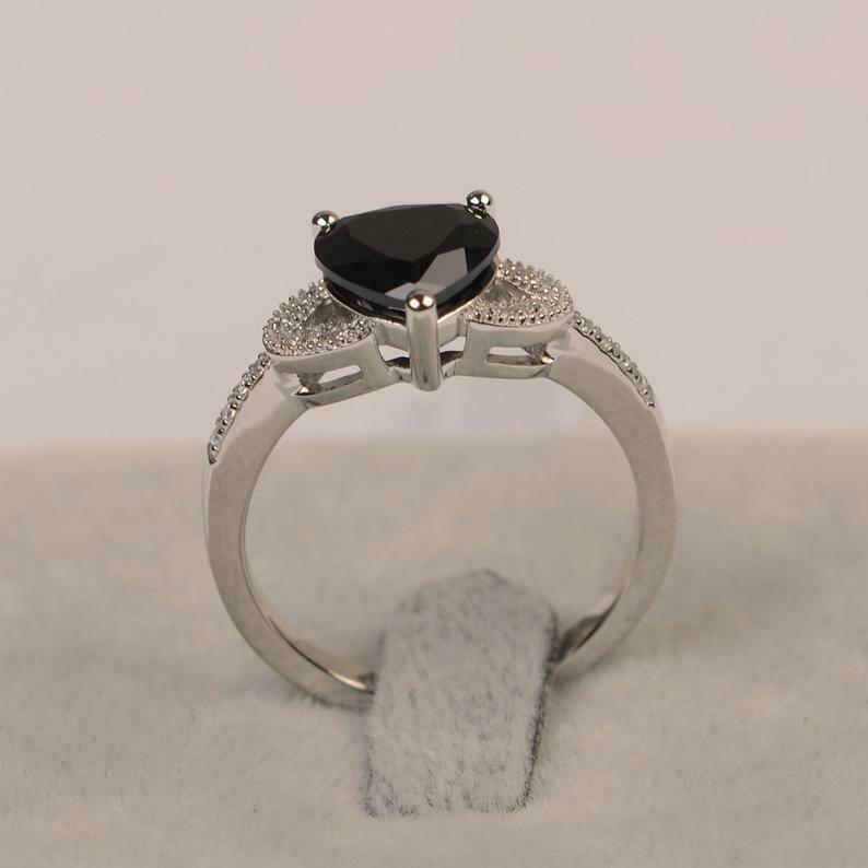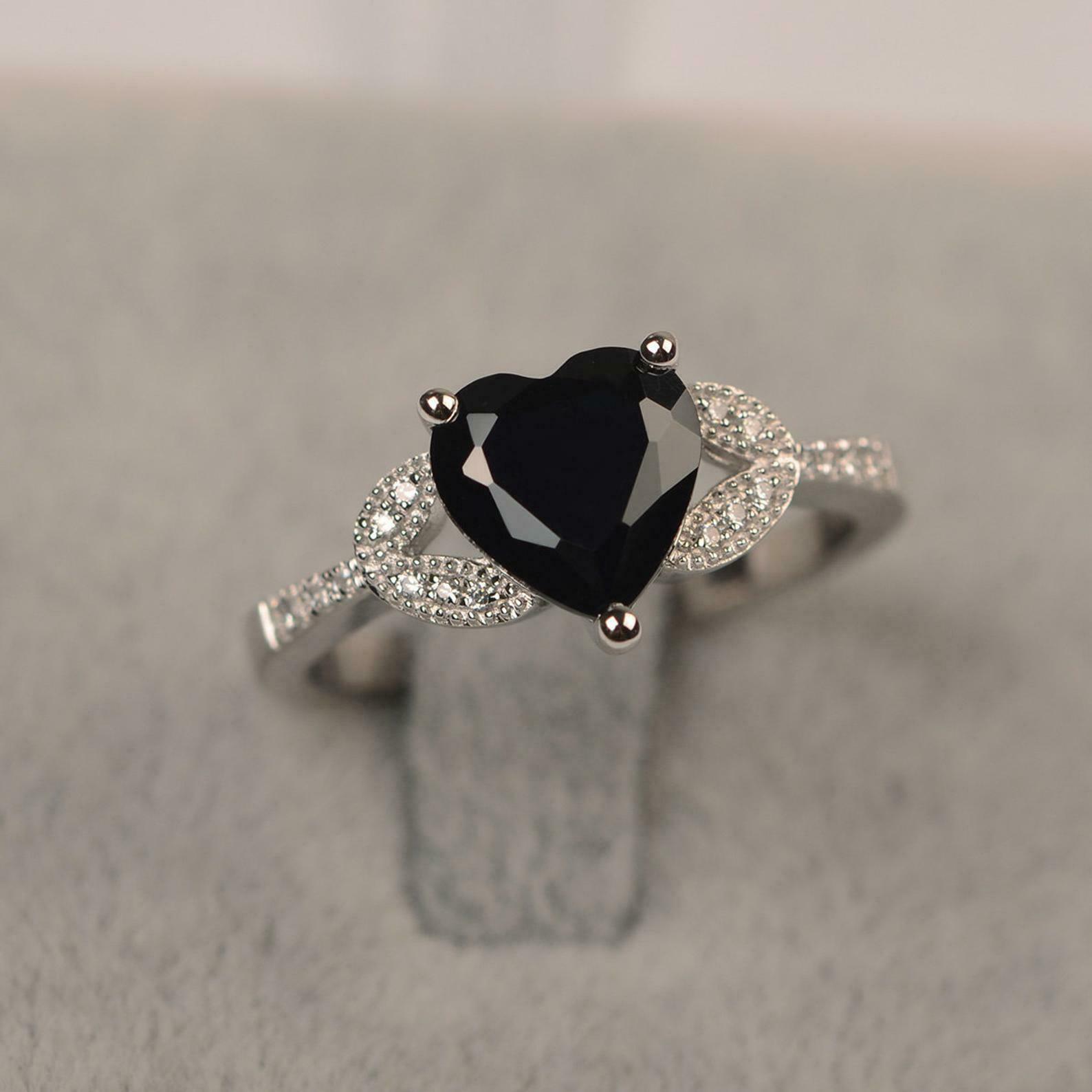 1.8ct Engagement Ring Heart Cut Black Diamond Leaf Accent 14k White Gold Finish