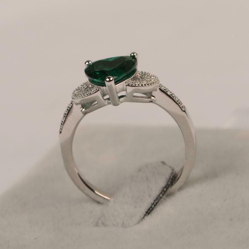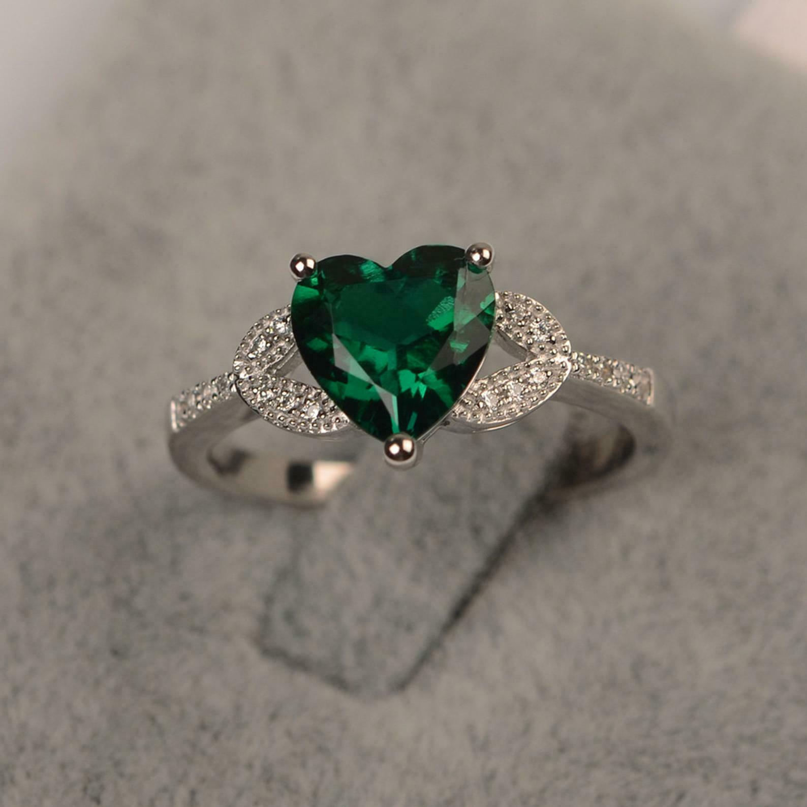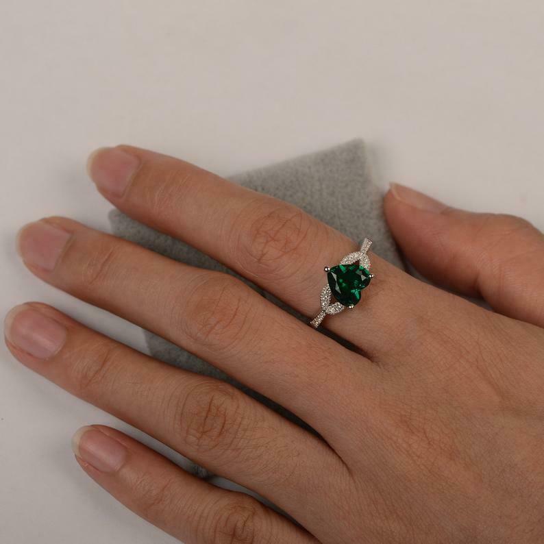 1.8ct Heart Cut Green Emerald Engagement Ring Leaf Accent 14k White Gold Finish