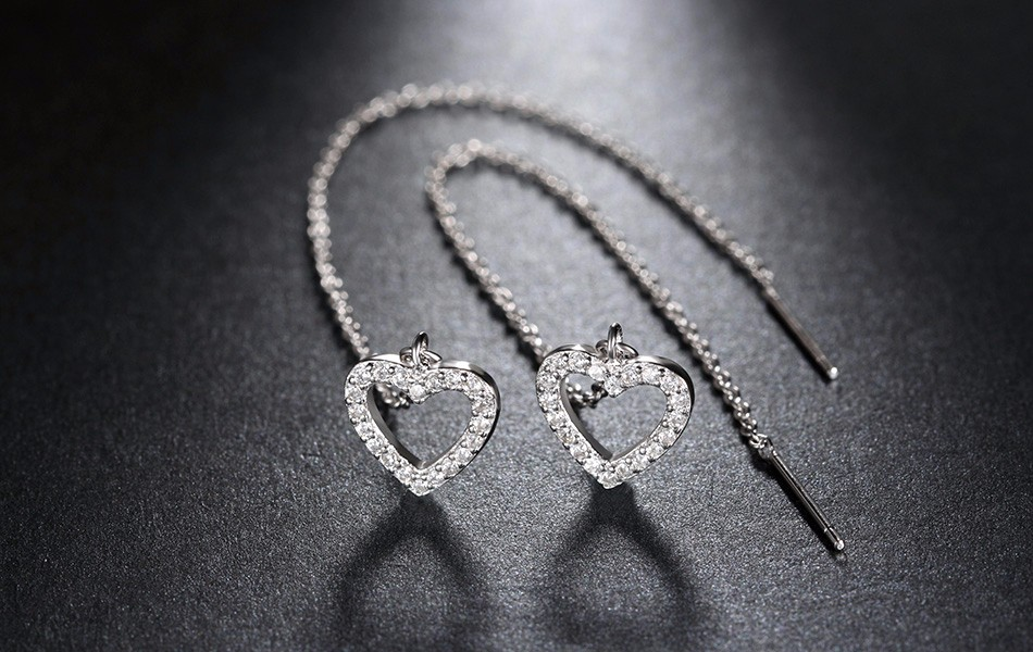 1.9ct Round Cut Diamond Heart Shape Wedding Drop Earrings 14k White Gold Finish
