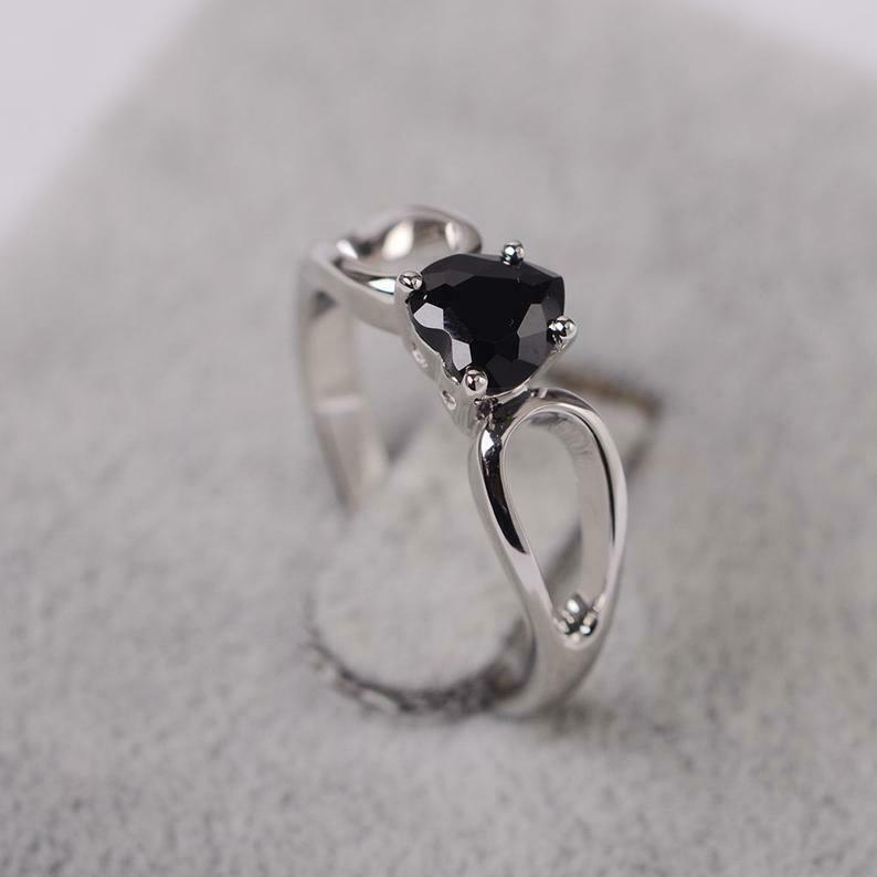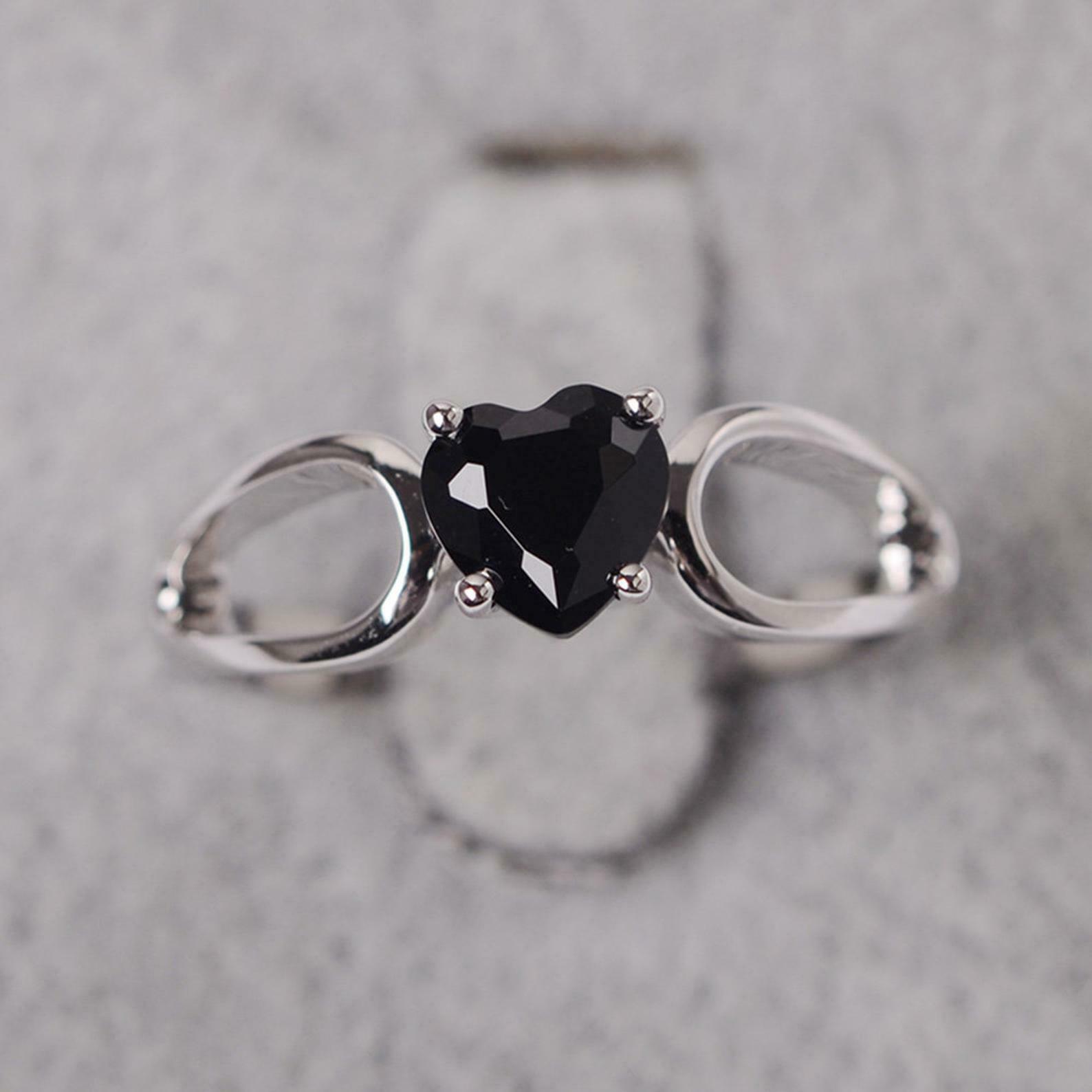 1ct Engagement Ring Heart Cut Black Diamond Split Shank 14k White Gold Finish