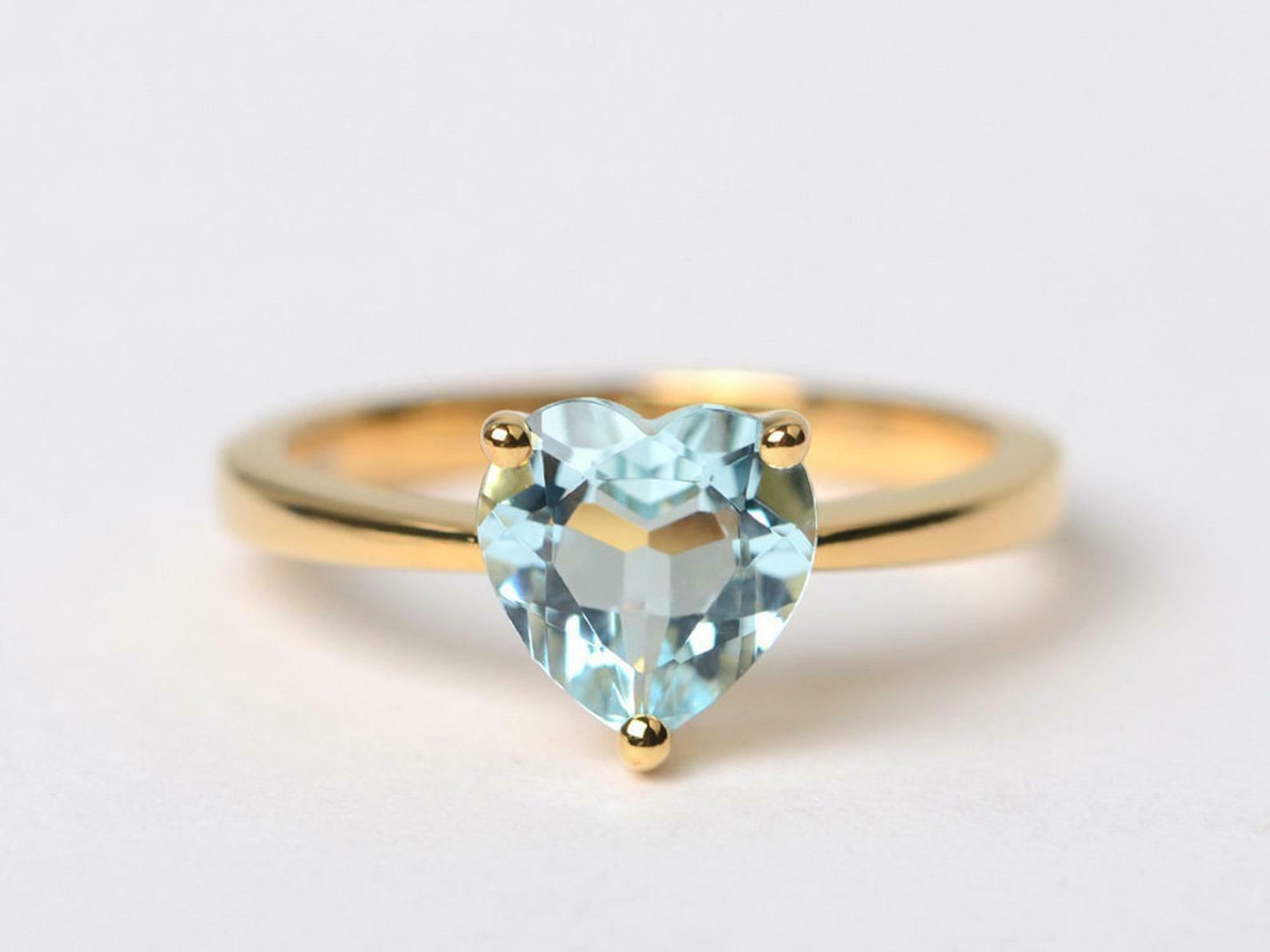 1ct Engagement Ring Heart Cut Blue Aquamarine Solitaire 14k Yellow Gold Finish