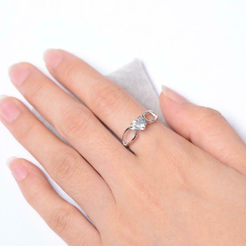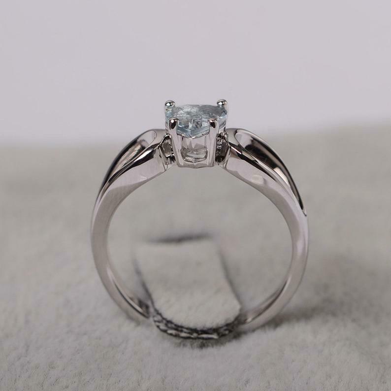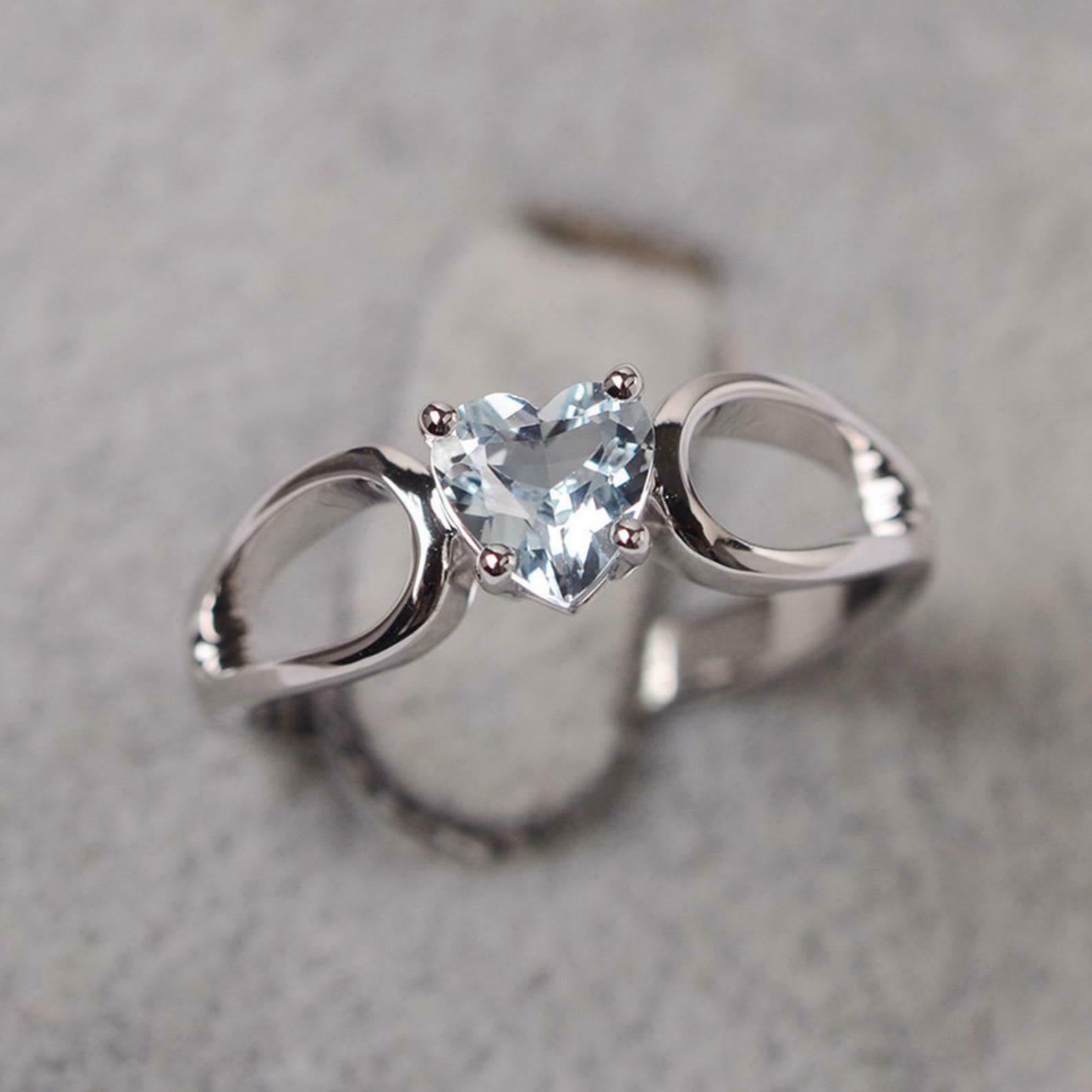 1ct Engagement Ring Heart Cut Blue Aquamarine Split Shank 14k White Gold Finish