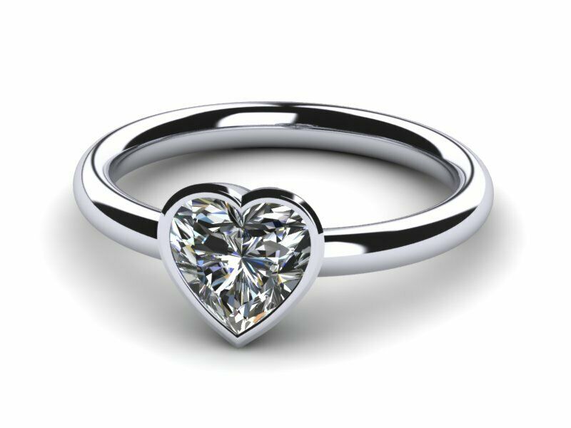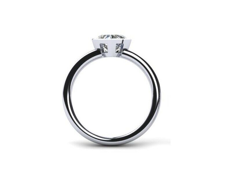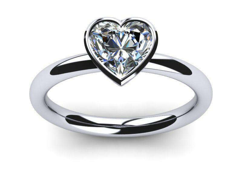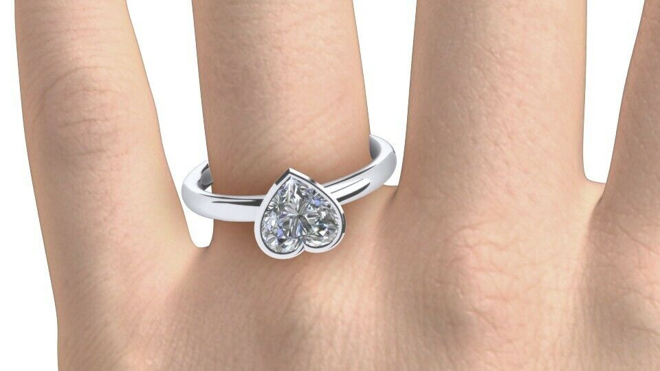1ct Engagement Ring Heart Cut Diamond Bezel Set Solitaire 14k White Gold Finish