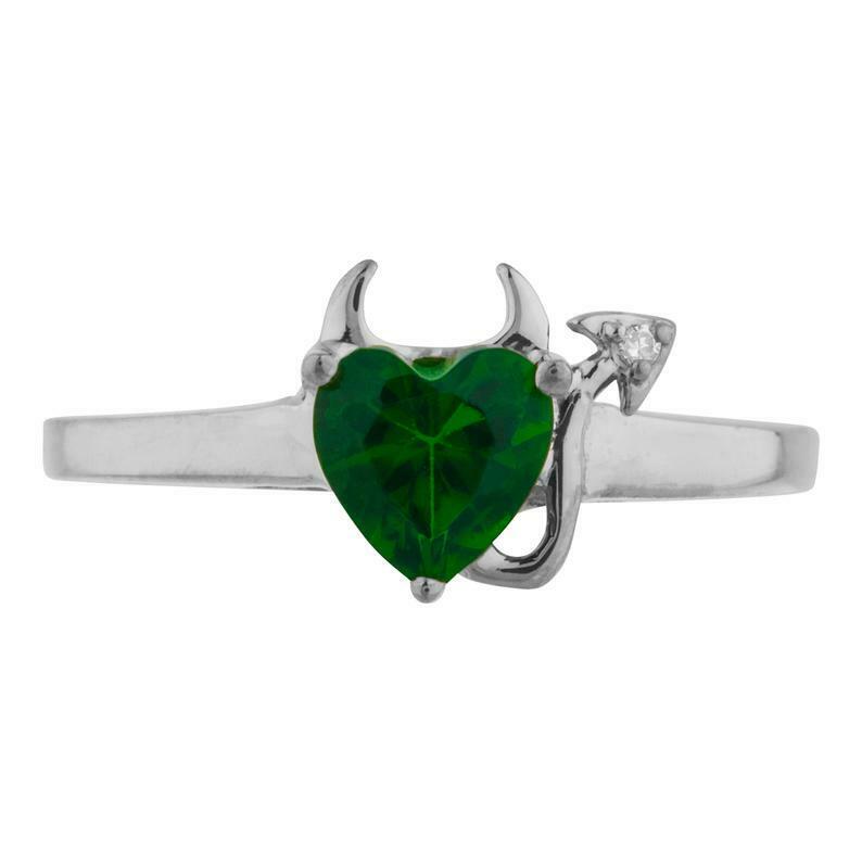 1ct Engagement Ring Heart Cut Green Emerald Devil Solitaire 14k White Gold Over