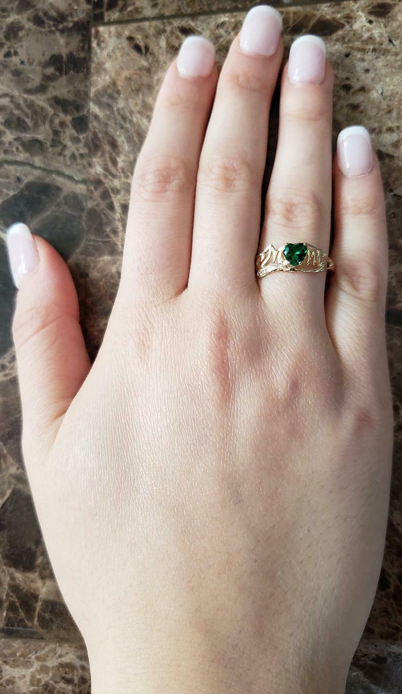 1ct Engagement Ring Heart Cut Green Emerald Mom Mothers Day 14k Yellow Gold Over