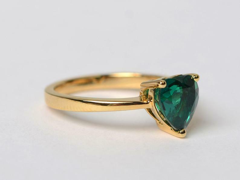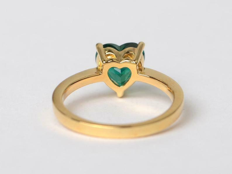 1ct Engagement Ring Heart Cut Green Emerald Solitaire 14k Yellow Gold Finish