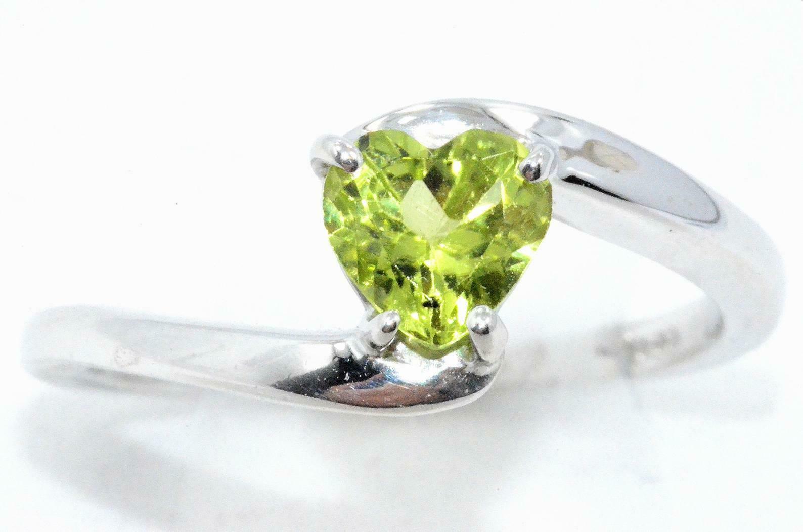 1ct Engagement Ring Heart Cut Green Peridot Solitaire 14k White Gold Finish
