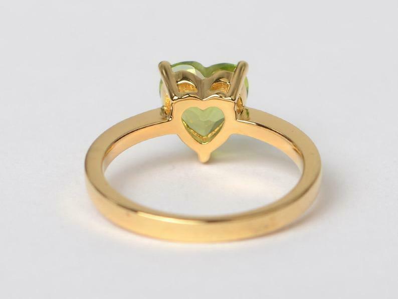 1ct Engagement Ring Heart Cut Green Peridot Solitaire 14k Yellow Gold Finish